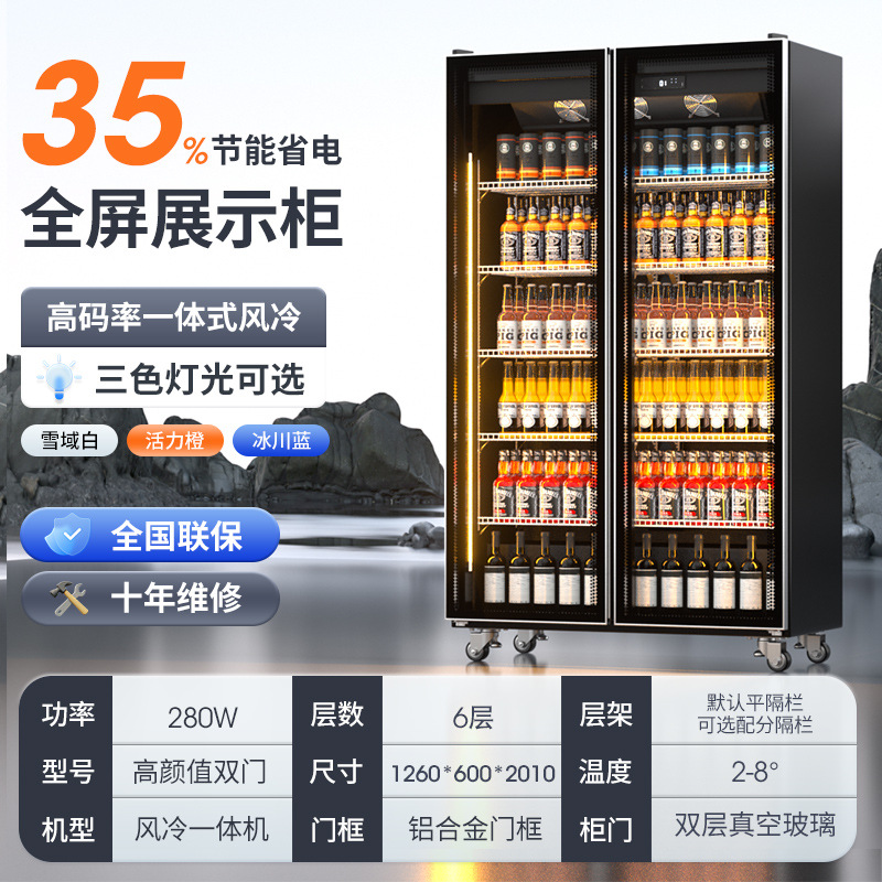 • 0x0x0cm-[고급형 전체 화면 김서림 방지 모델] 이중 도어 1260*600*2010 3색 조명