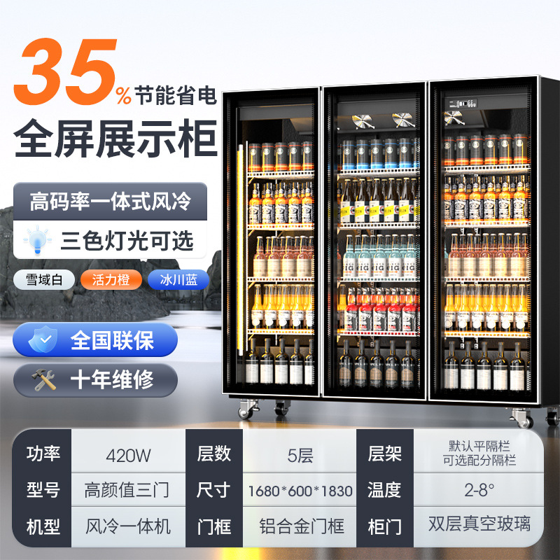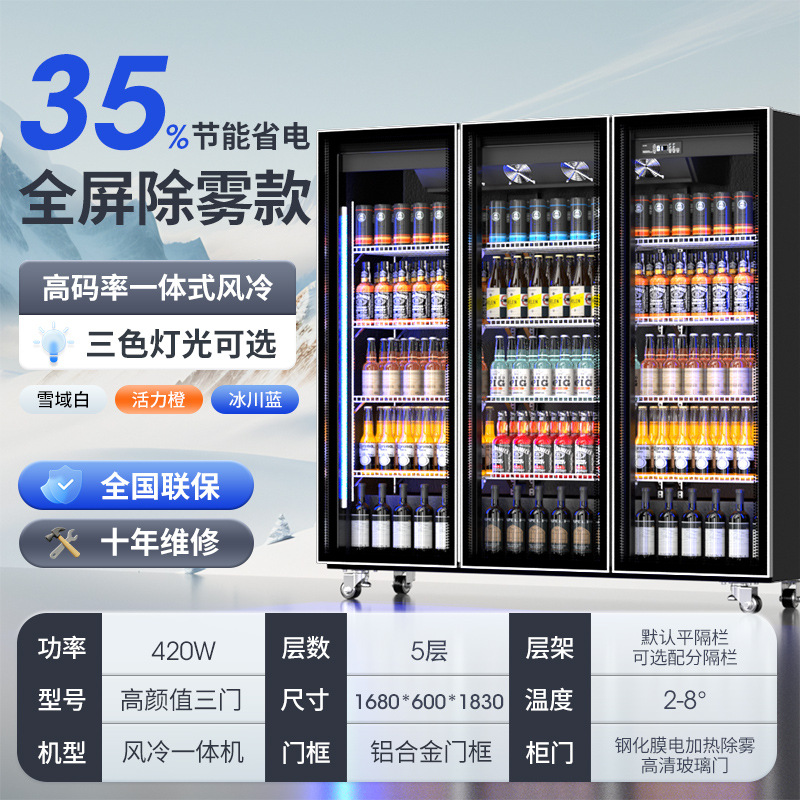 • 0x0x0cm-[고급형 전체 화면 김서림 방지 모델] 3도어 1680*600*1830 3색 조명