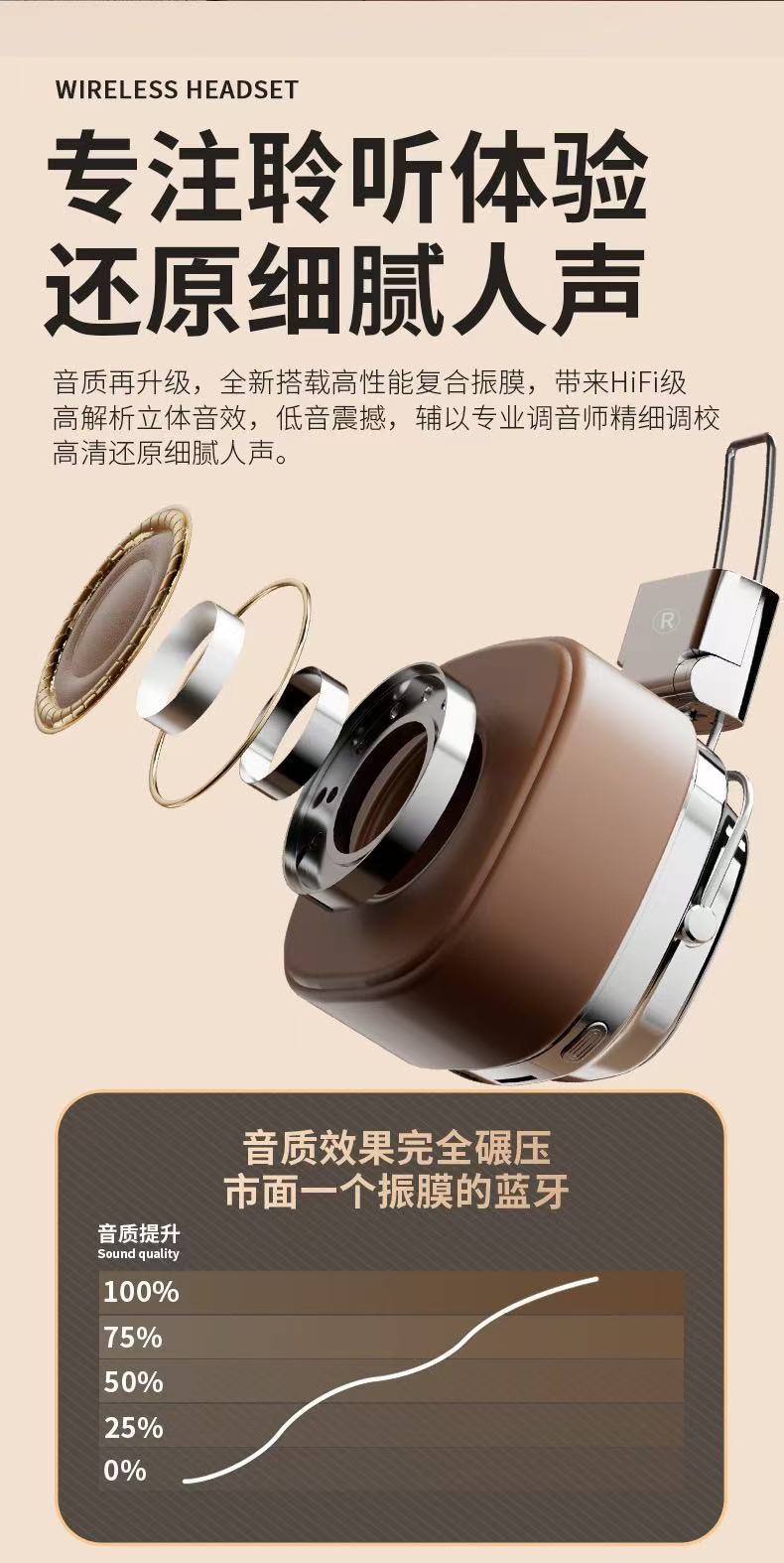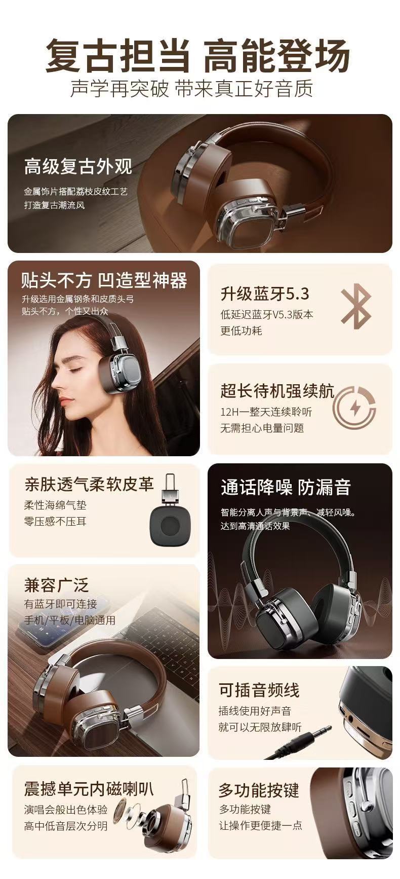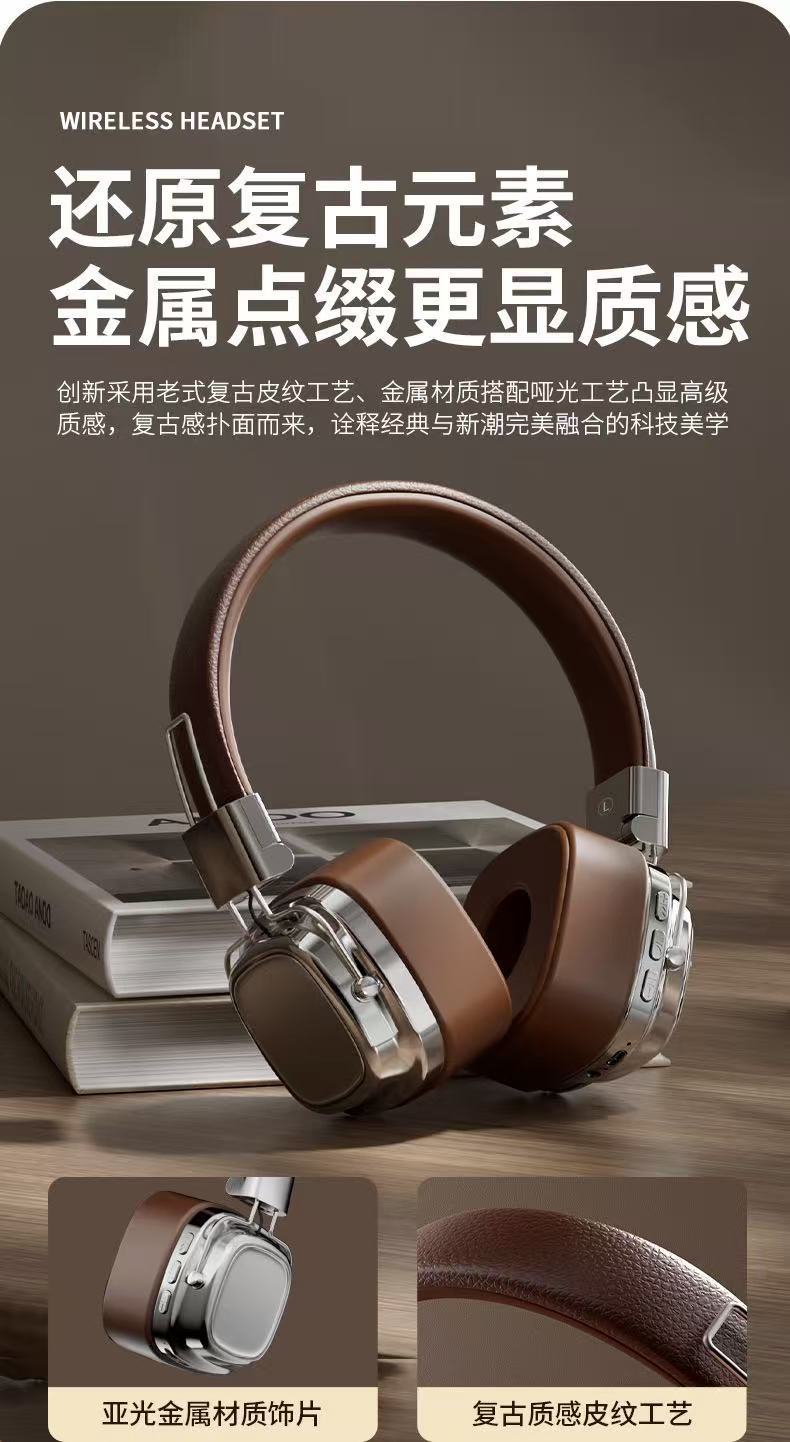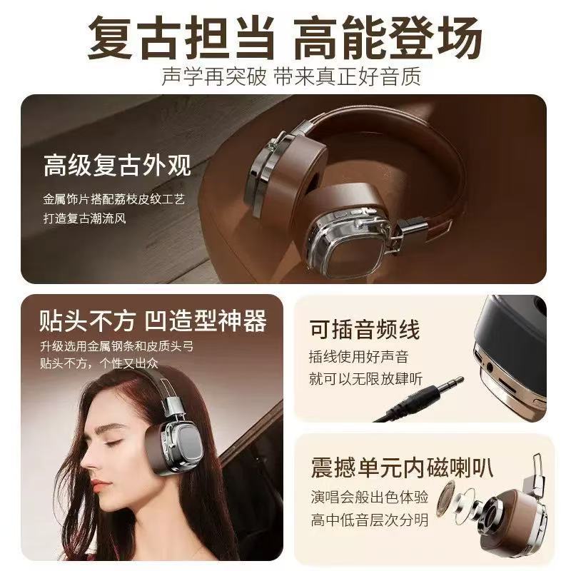 국경 간 새로운 레트로 Maillard 착용 무선 헤드셋 호출 헤드셋 긴 내구성 블루투스 헤드셋