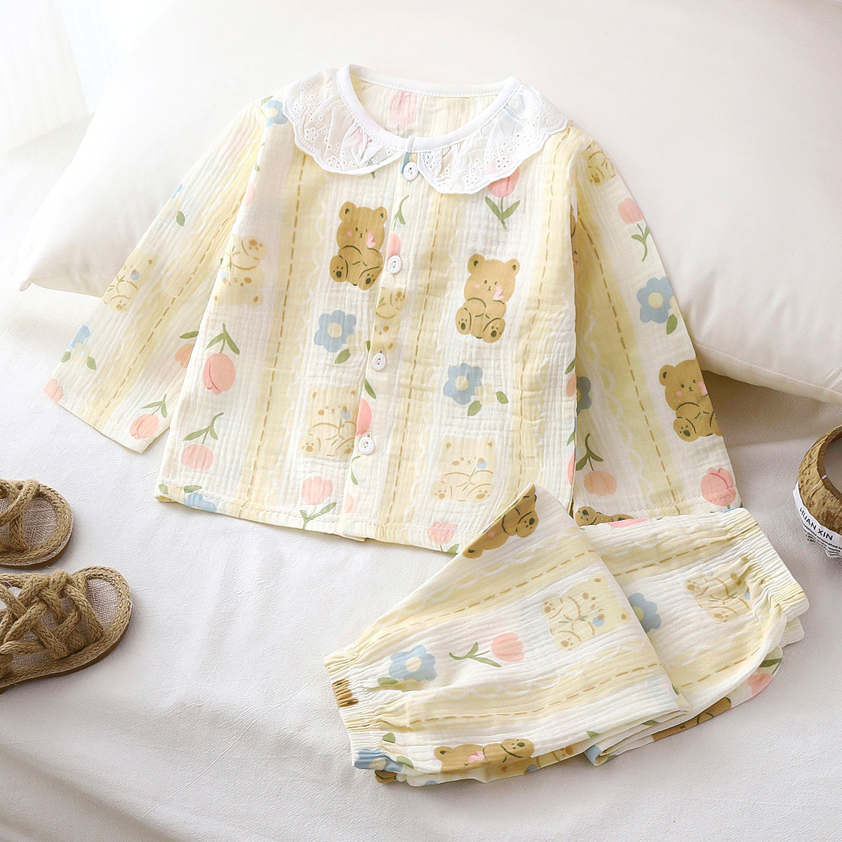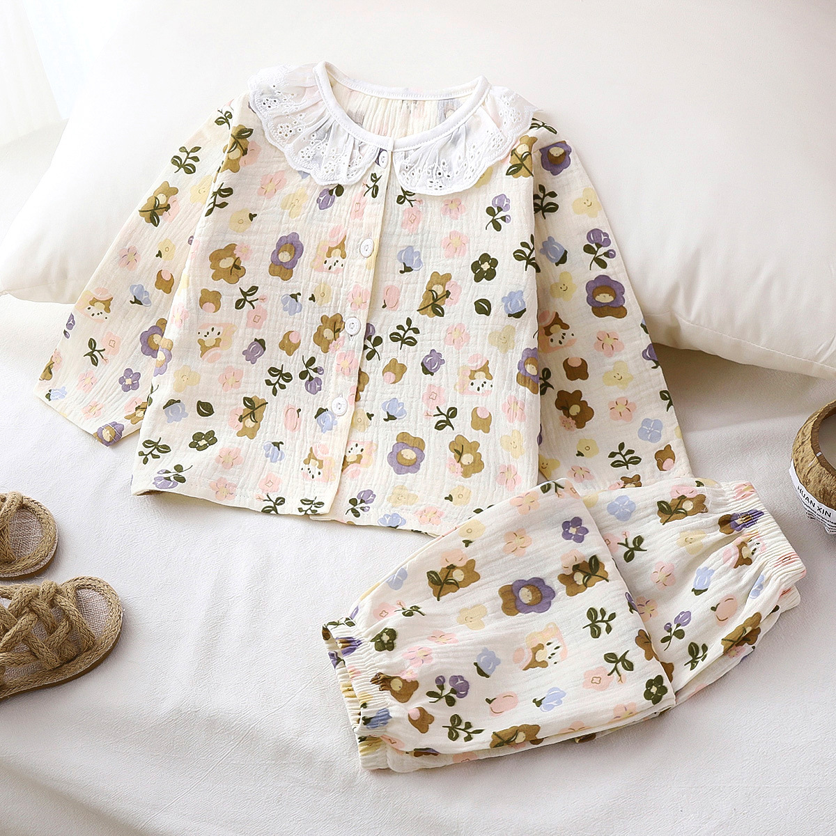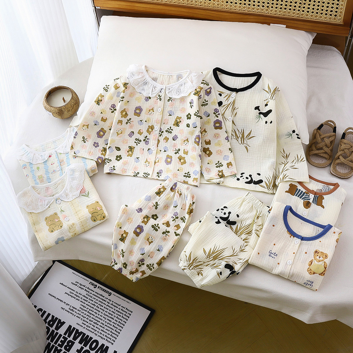 어린이 잠옷 세트 새로운 여름 클래스 면사 소년 면화 소녀 긴팔 가정 의류 아동 의류 도매스토어 가기