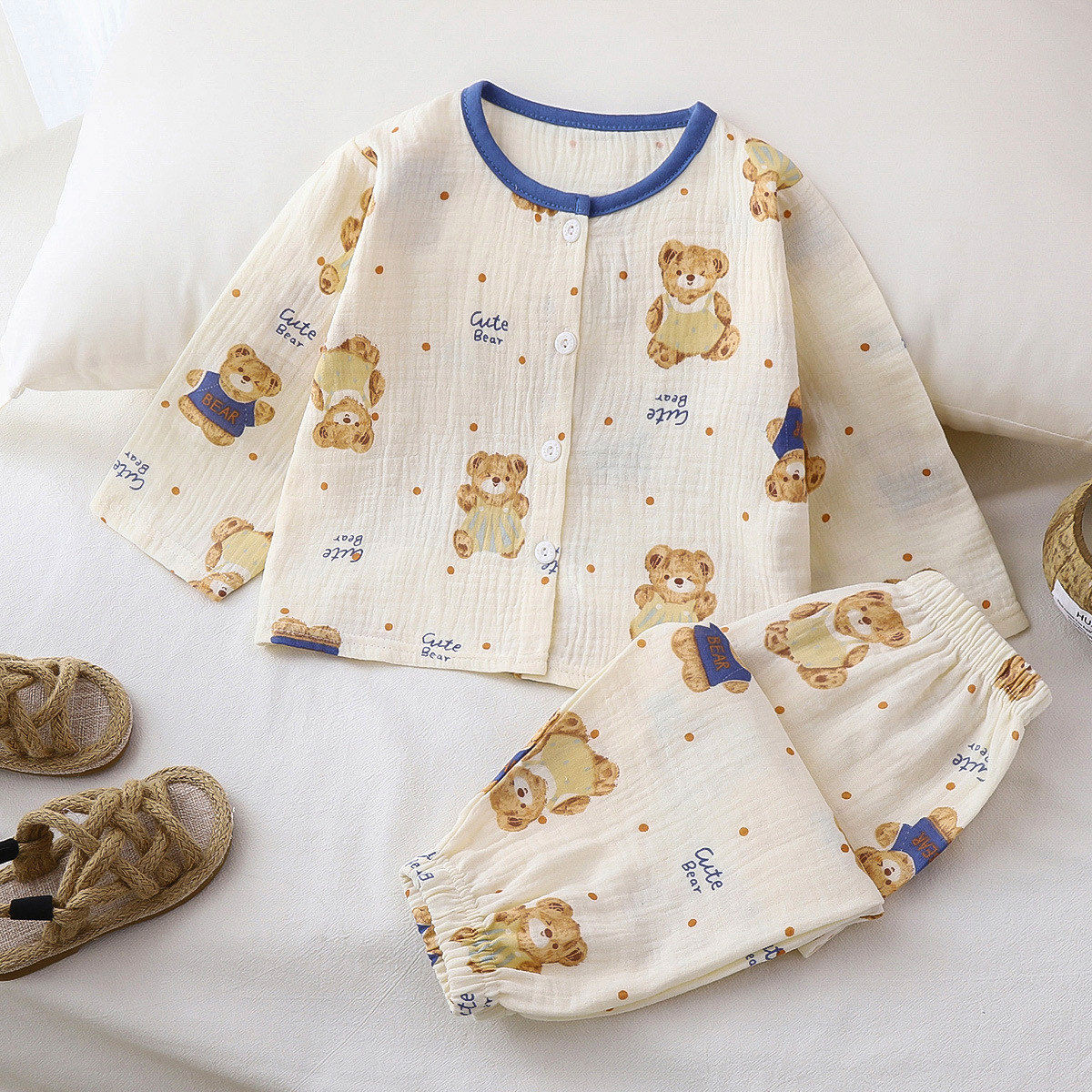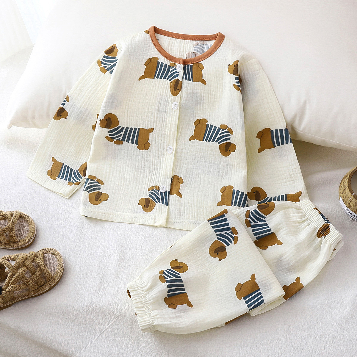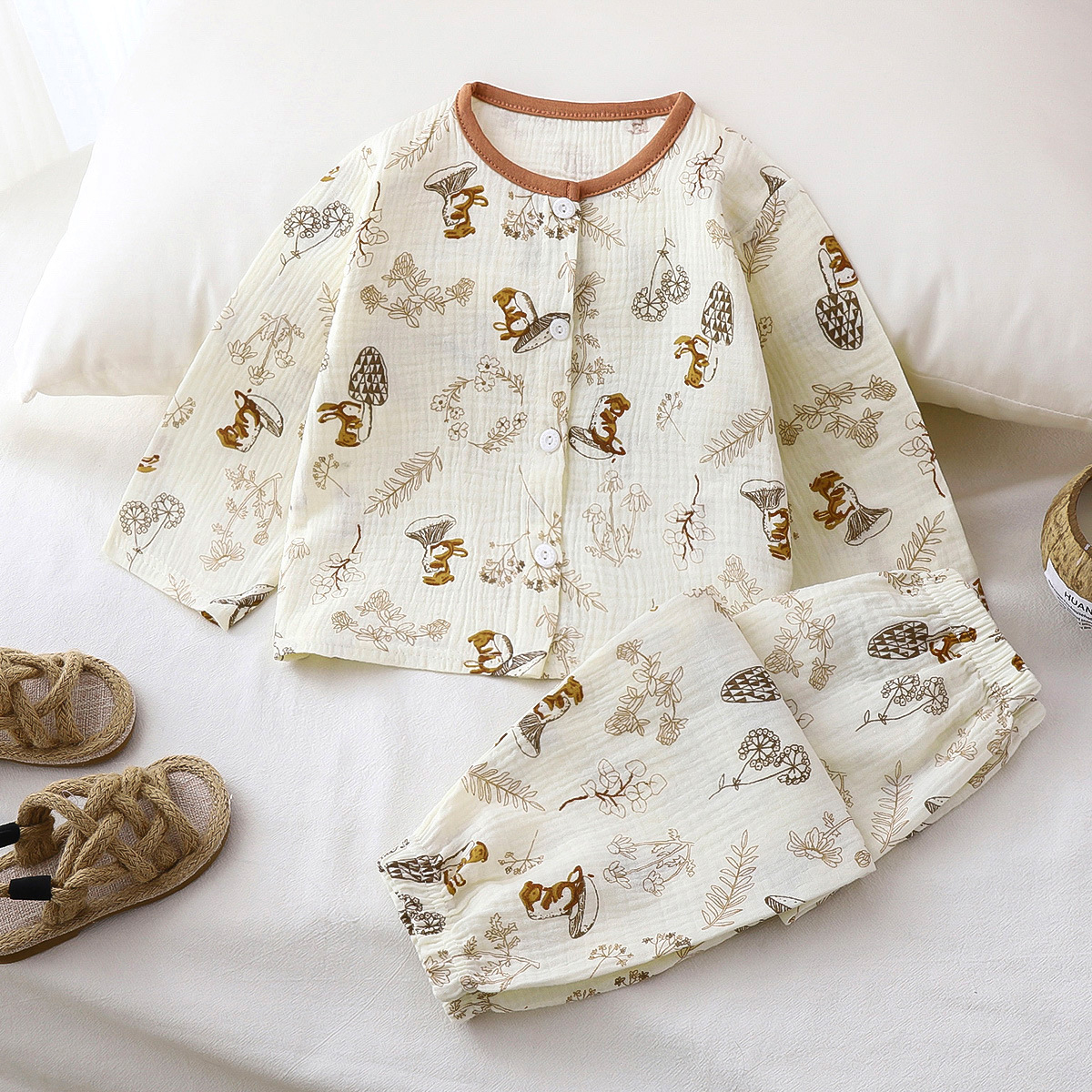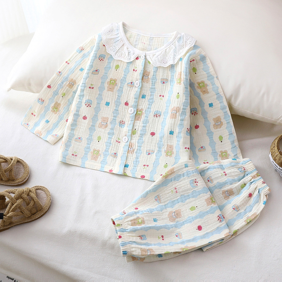어린이 잠옷 세트 새로운 여름 클래스 면사 소년 면화 소녀 긴팔 가정 의류 아동 의류 도매스토어 가기