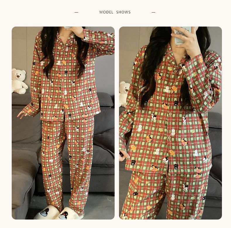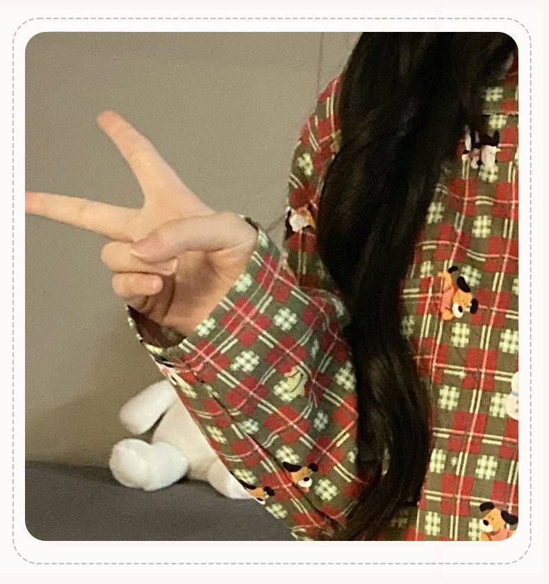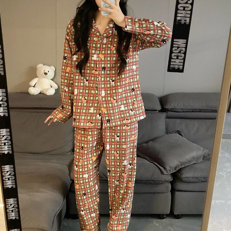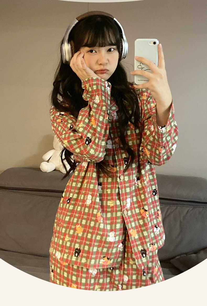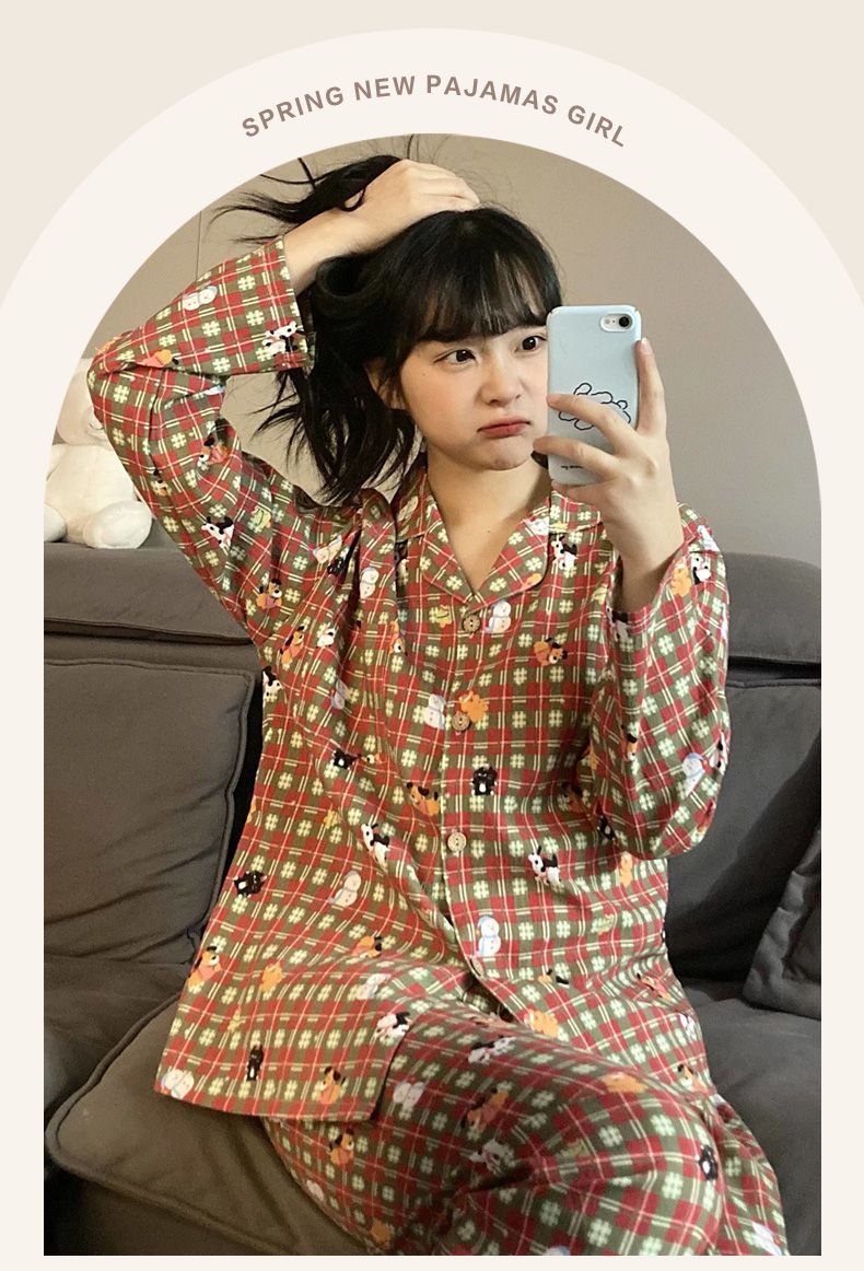 붉은 광장 강아지 Instagram 스타일 잠옷 여성의 봄과 가을 새로운 구름 만화 카디건 긴 소매 바지 홈 옷스토어 가기