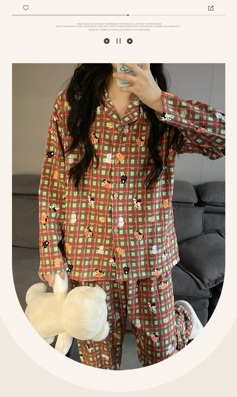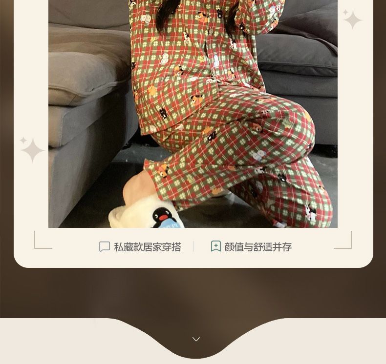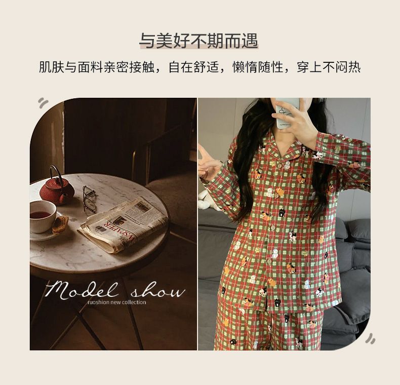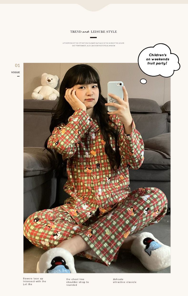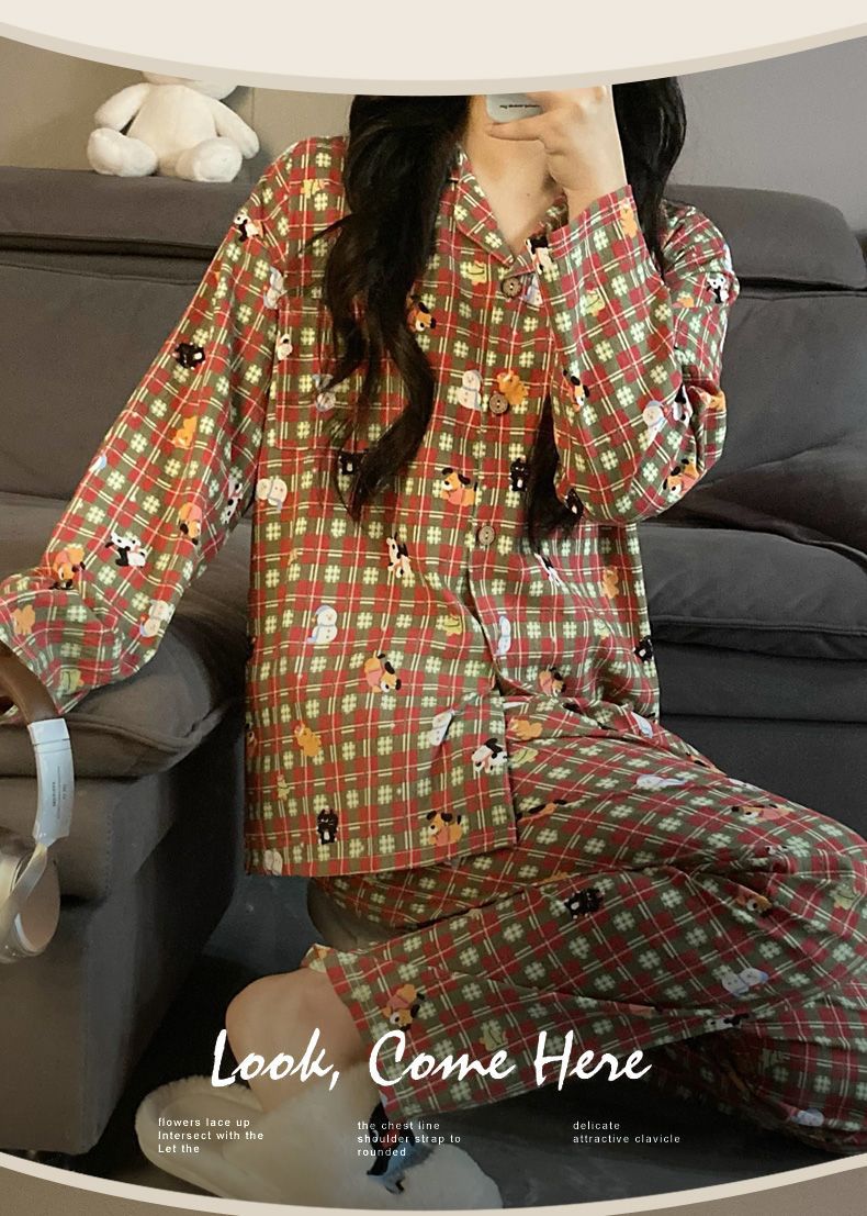 붉은 광장 강아지 Instagram 스타일 잠옷 여성의 봄과 가을 새로운 구름 만화 카디건 긴 소매 바지 홈 옷스토어 가기