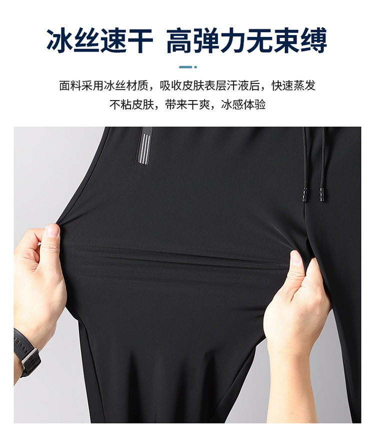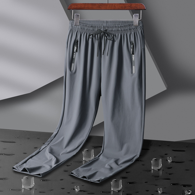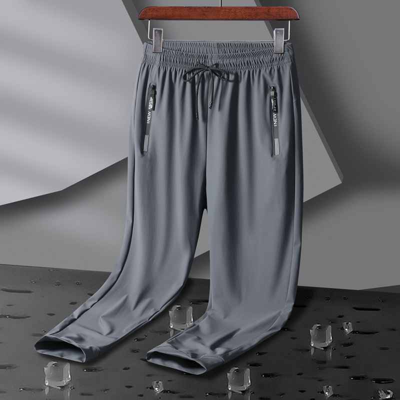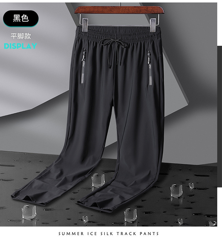 플러스 사이즈 아이스 실크 바지 남자 다리 스포츠 바지 높은 탄성 빠른 건조 캐주얼 바지 스트레이트 야외 태양 보호 에어컨 바지 남자스토어 가기