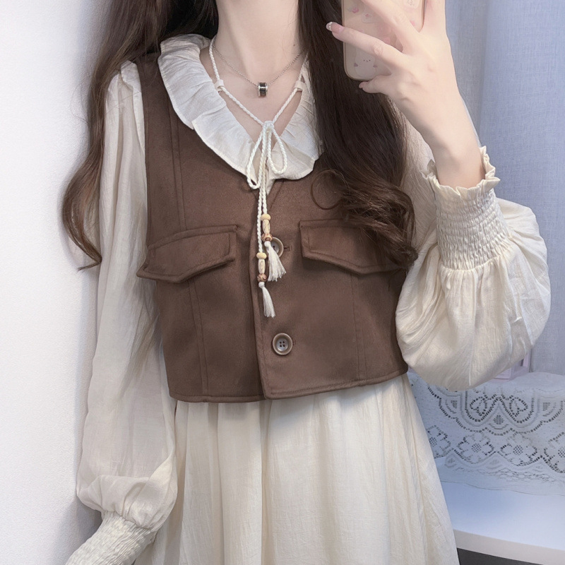 • [슈트] 오프화이트 드레스 + 브라운 조끼