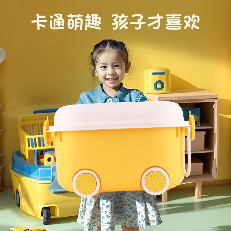 노란 오리 플라스틱 장난감 저장 상자 가정용 아기 옷 간식 대용량 저장 상자 블록 상자 풀리
