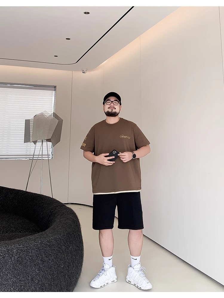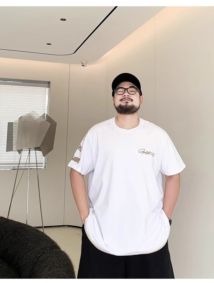 뚱뚱한 남자 가짜 투피스 반팔 티셔츠 남자 여름 느슨한 캐주얼 플러스 사이즈 플러스 사이즈 패션 브랜드 라운드 퓨어 넥 반팔 티셔츠스토어 가기