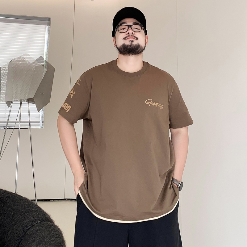 뚱뚱한 남자 가짜 투피스 반팔 티셔츠 남자 여름 느슨한 캐주얼 플러스 사이즈 플러스 사이즈 패션 브랜드 라운드 퓨어 넥 반팔 티셔츠