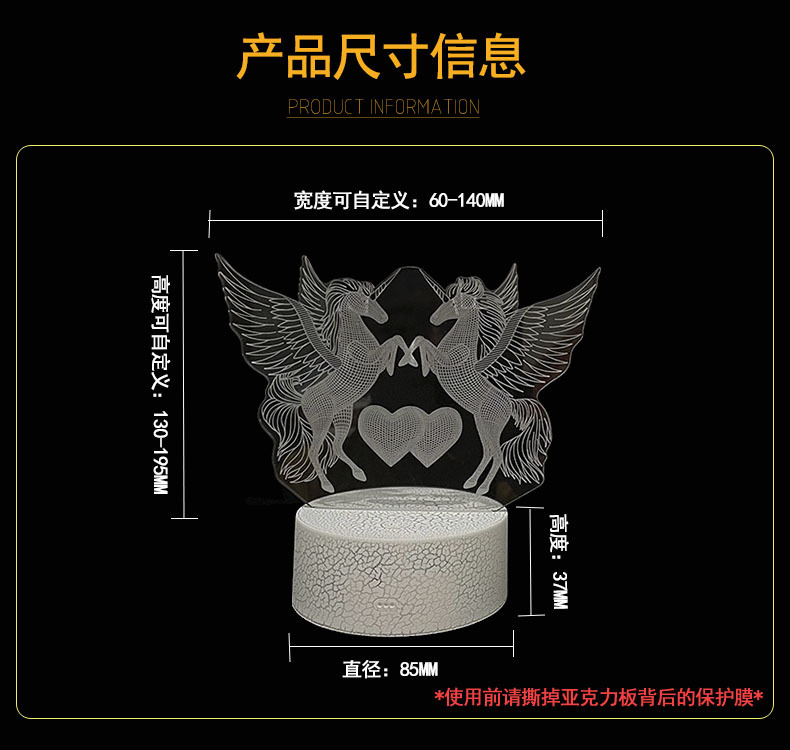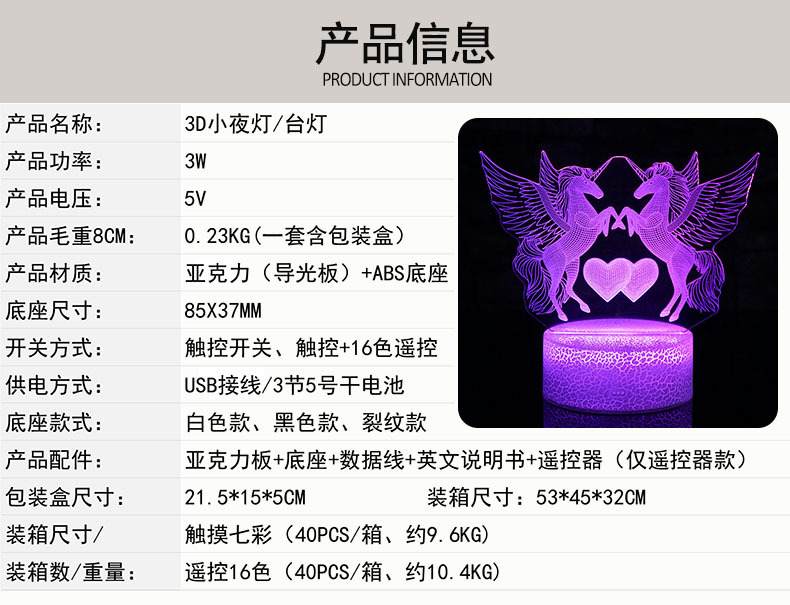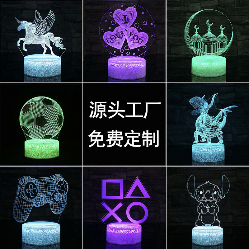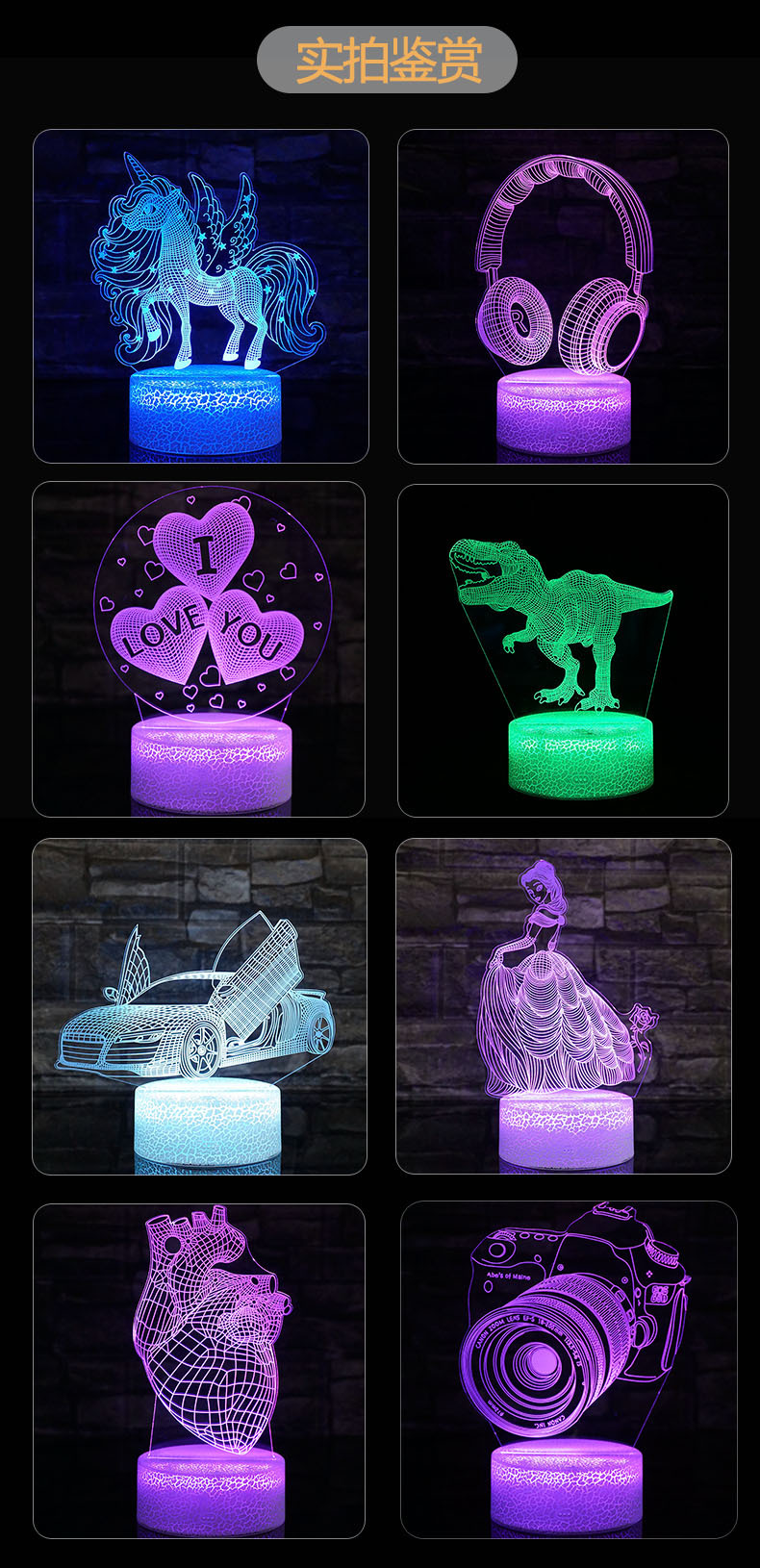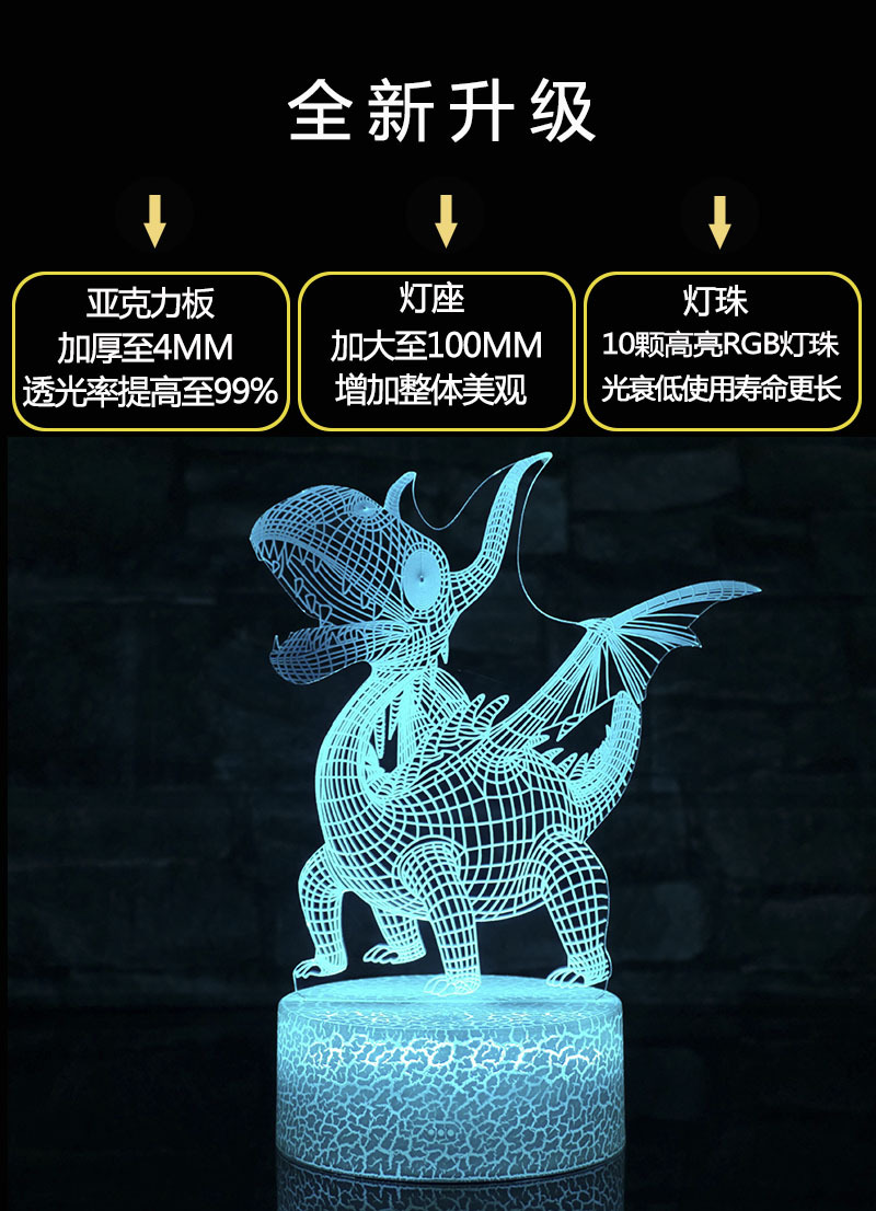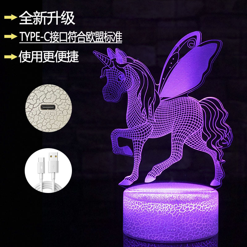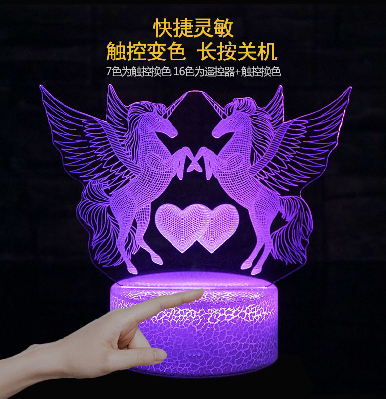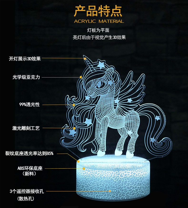 아마존 3D 밤 빛 아크릴 공룡 유니콘 게임 핸들 달 분위기 빛 창조적 인 선물