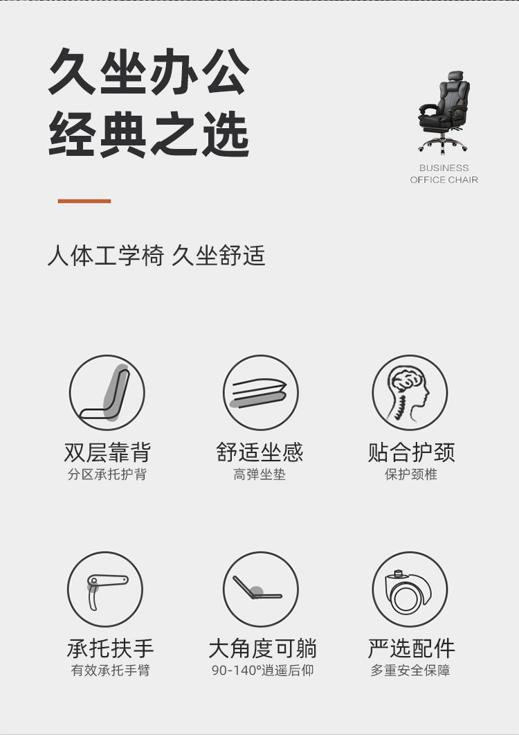 • 검은 고양이 긁는 가죽 + 라텍스 쿠션 + 3D 조절식 머리 받침 + 발 받침