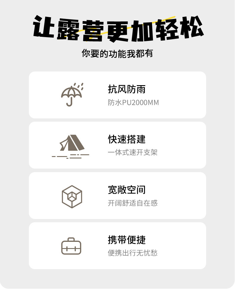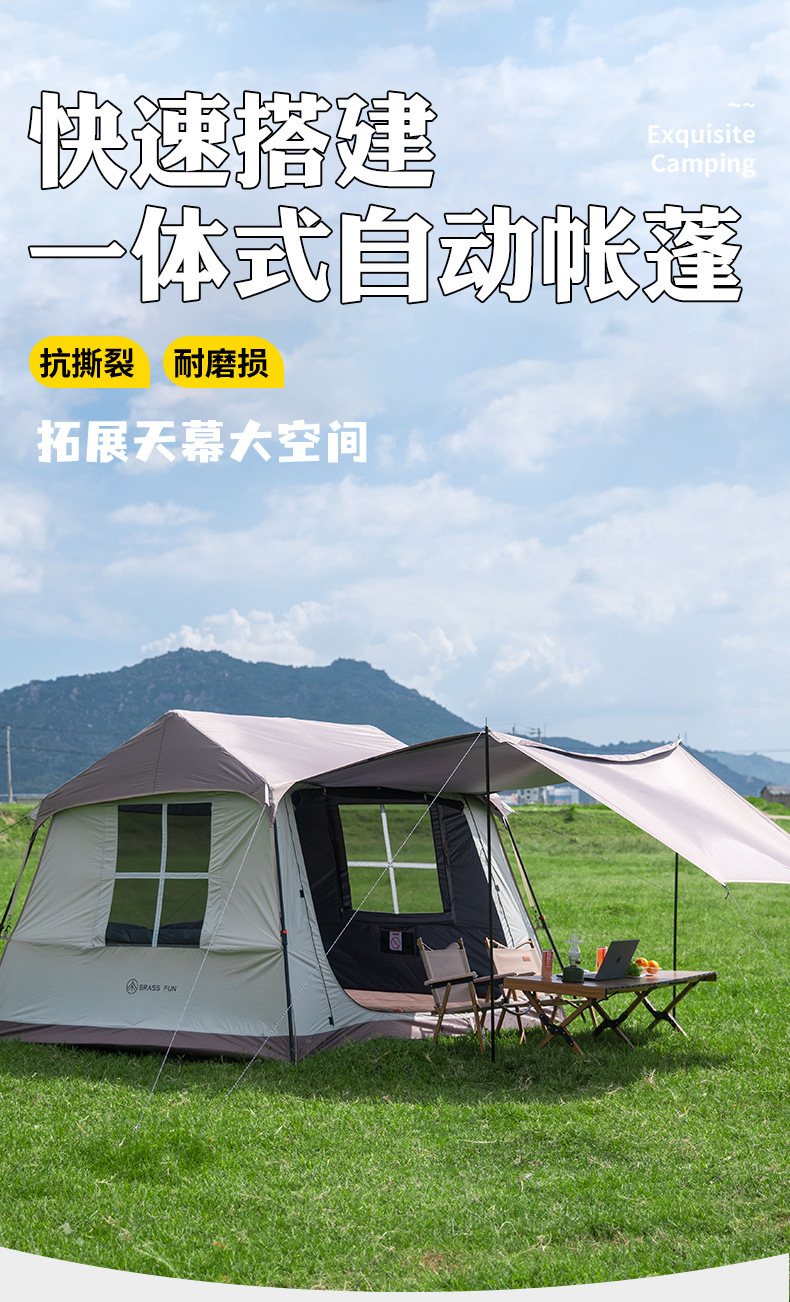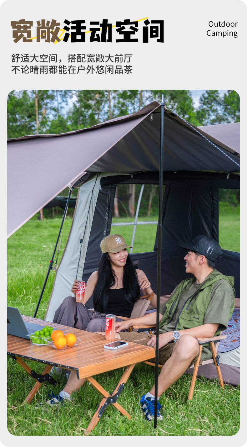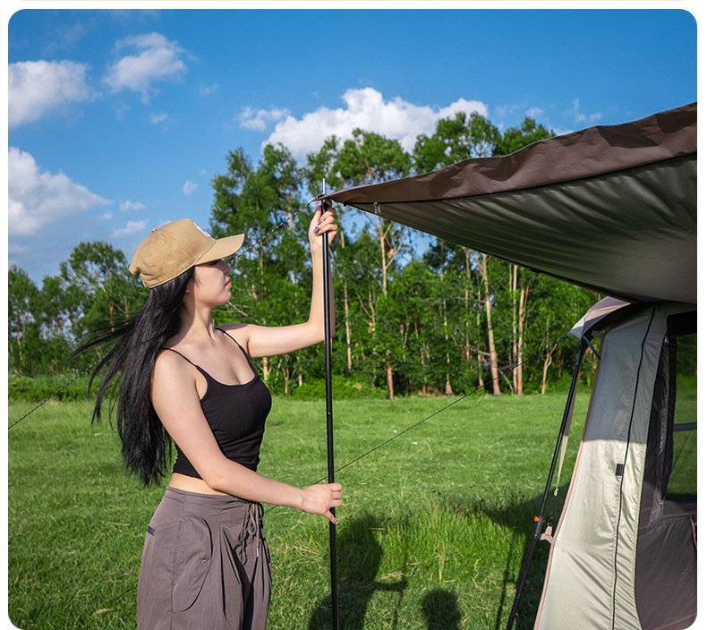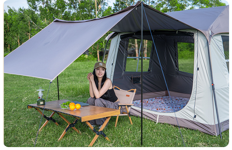 녹색 잔디 집 능선 속도 오프닝 텐트 캐노피 2 대 1 대형 야외 캠핑 전체 장비 검은 고무 자외선 차단제스토어 가기