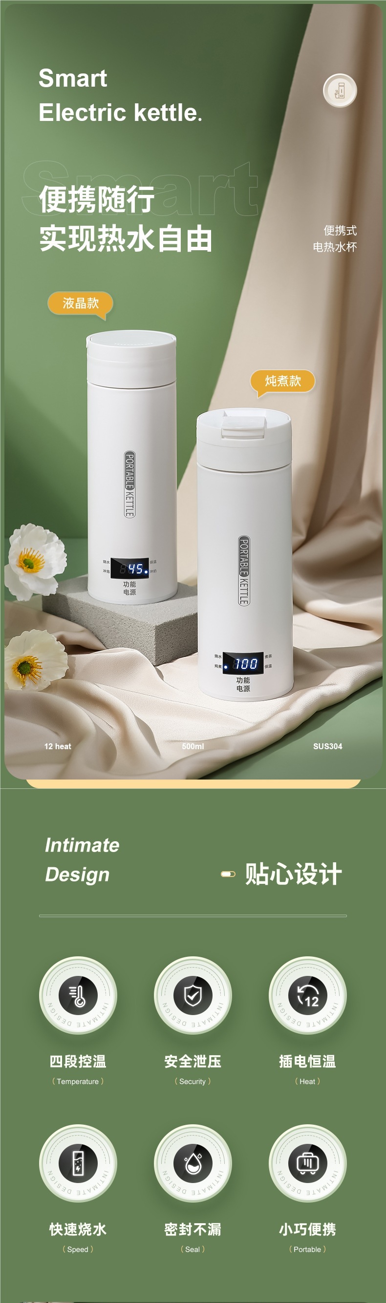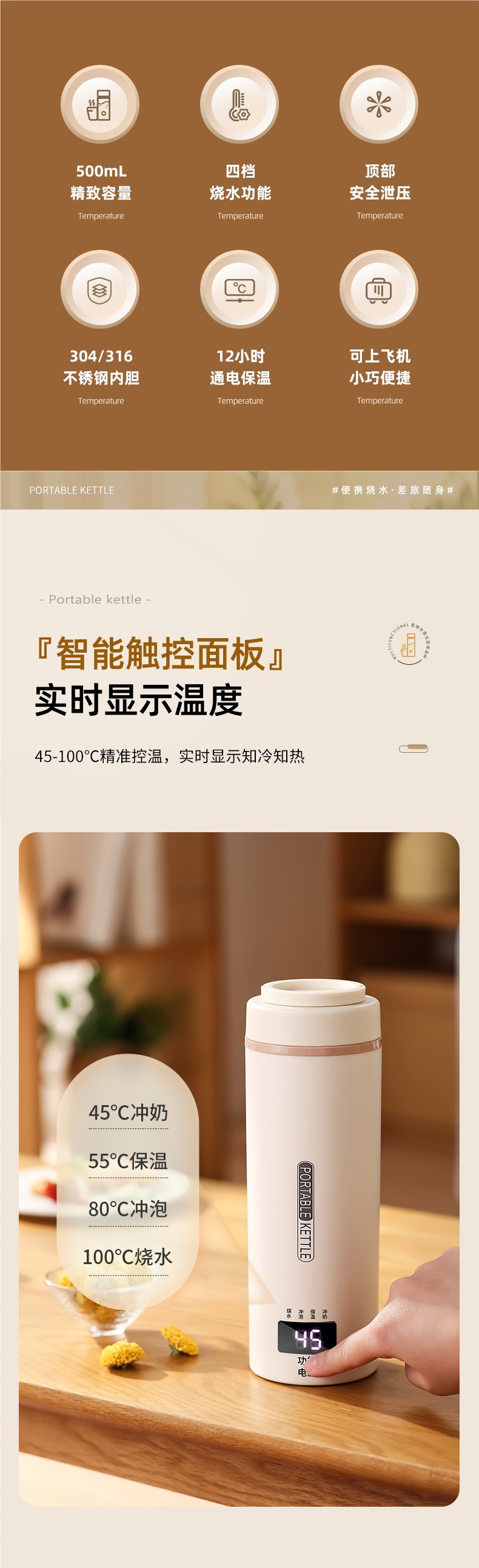 휴대용 주전자 일정한 온도 절연 여행 불타는 물 컵 기숙사 뜨거운 물 주전자 전기 컵 충전 전기 난방