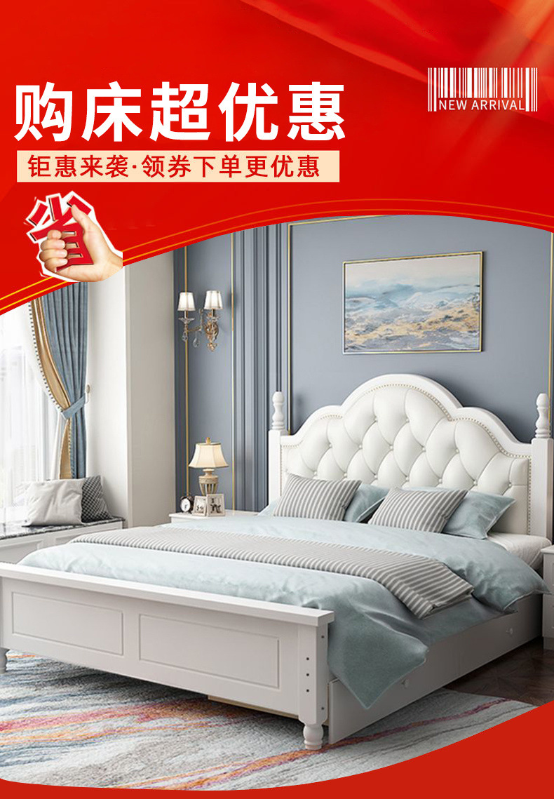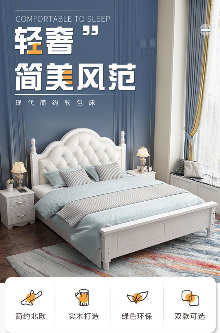 유럽식 목가적 인 스타일의 단단한 나무 침대 간단한 1.8 m 마스터 침실 더블 침대 렌탈 룸 저장 공주 1.2 m 싱글 침대스토어 가기