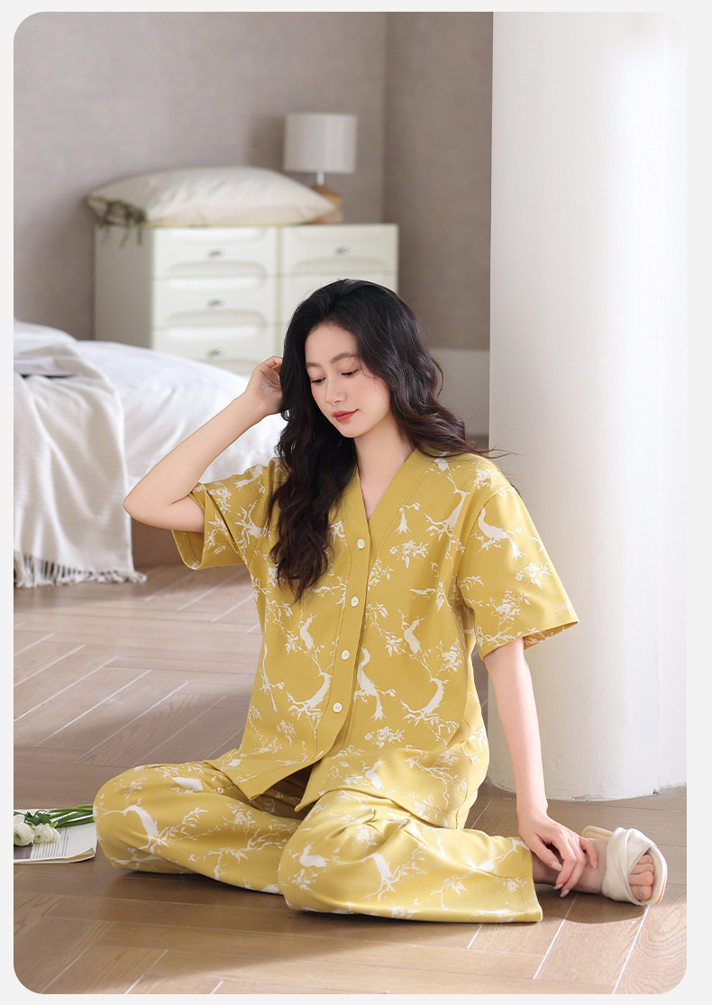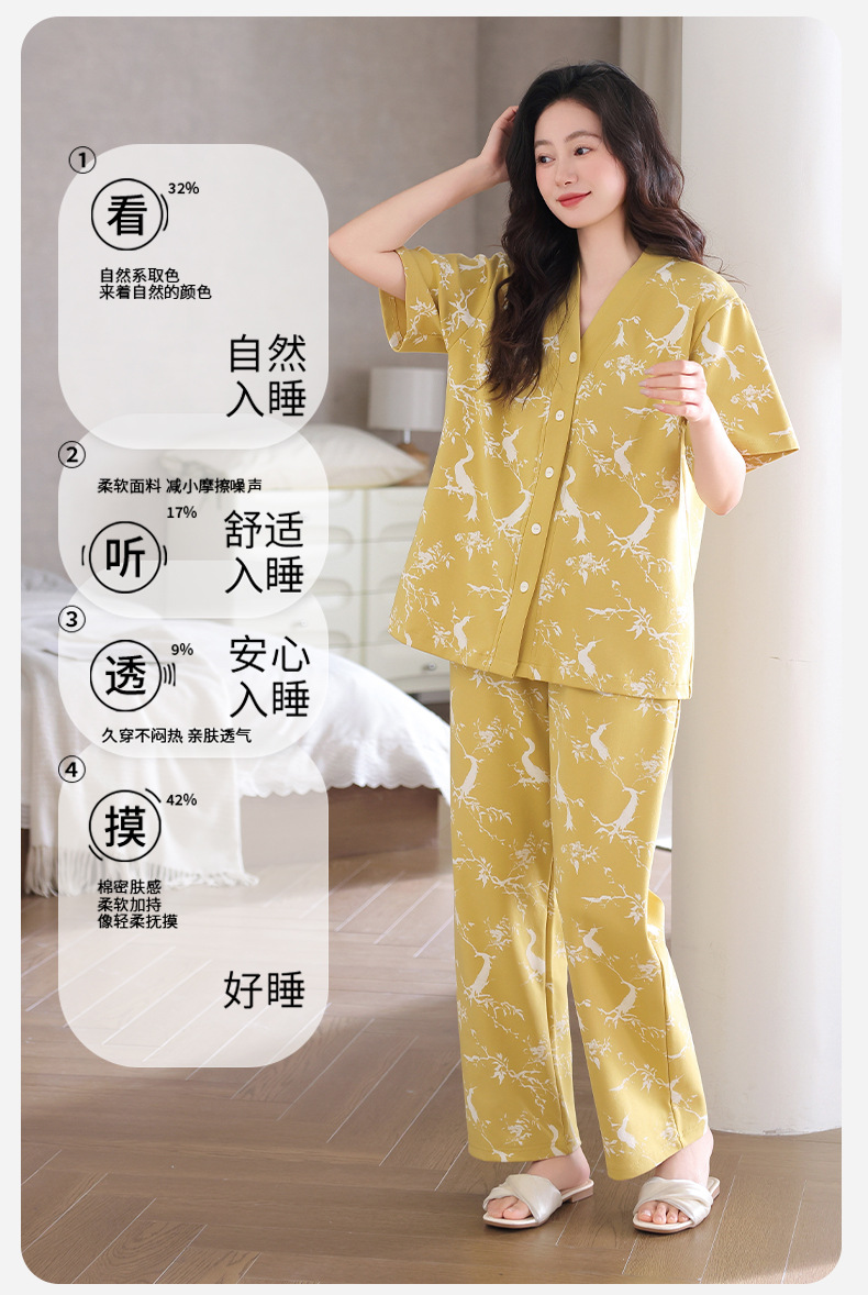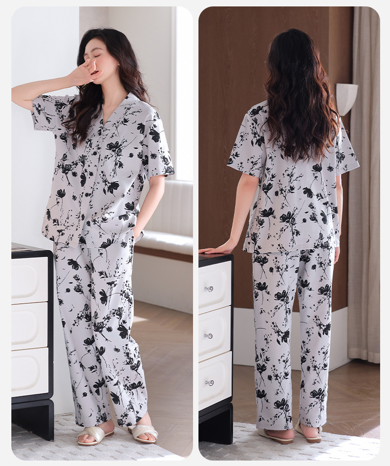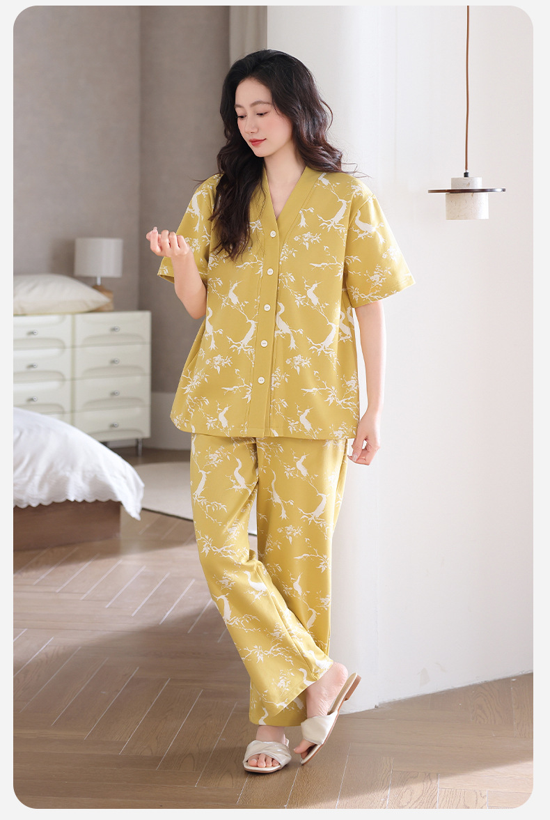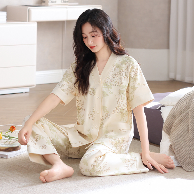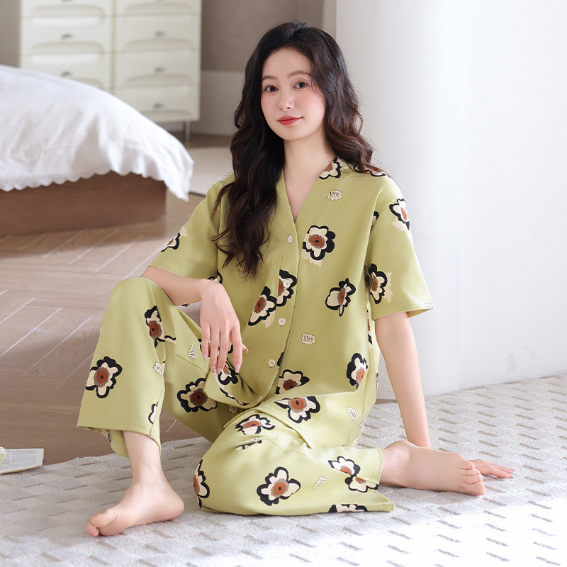 2025 새로운 스타일 잠옷 여성 여름 순면 반팔 바지 캐주얼 중년 어머니 카디건 홈 의류 세트스토어 가기