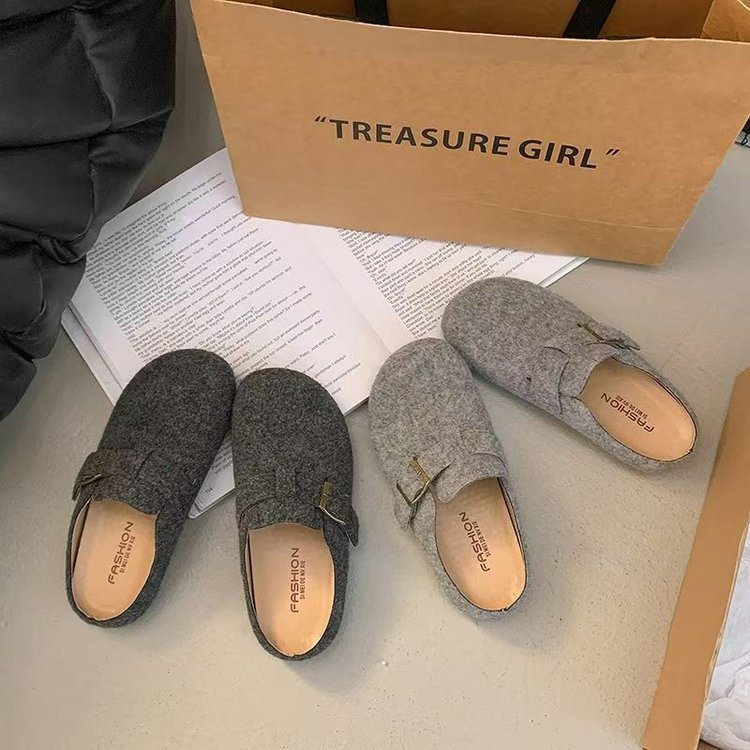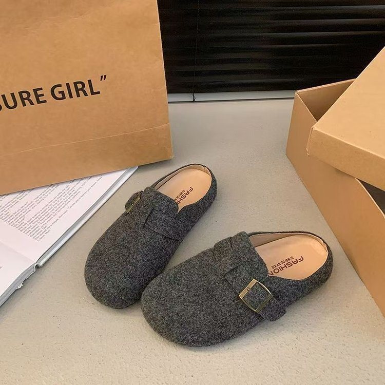 겉옷 슬립 온 모직 여성용 2025 새로운 버켄탈 신발 두꺼운 유일한 게으른 슬리퍼 하프 슬리퍼 가을과 겨울 빈티지스토어 가기