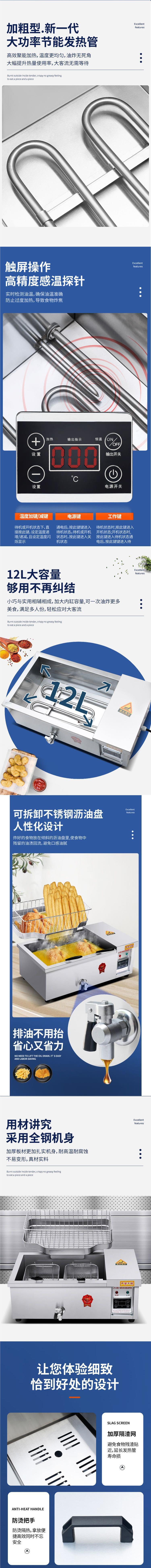 • 12형 디지털 디스플레이 + 튀김 바구니 2개 + 오일 필터 팬 + 튀김 반죽 스틱 프레임