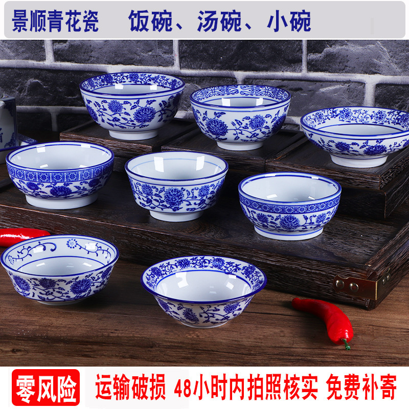 세라믹 파란색과 흰색 도자기 쌀 그릇 수프 그릇 작은 그릇 테이블 탑 밥 그릇 고온 높은 발 안티 스케일 먹는 그릇 식당 상업 가정스토어 가기