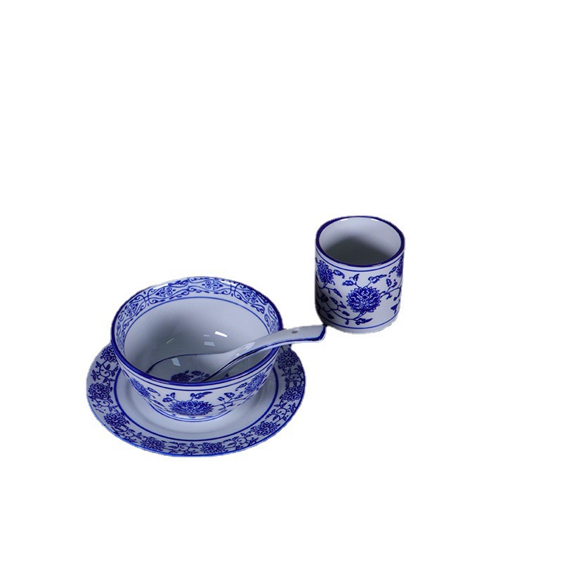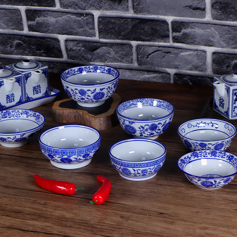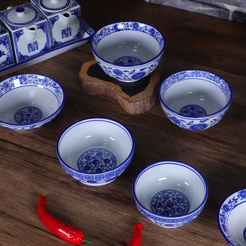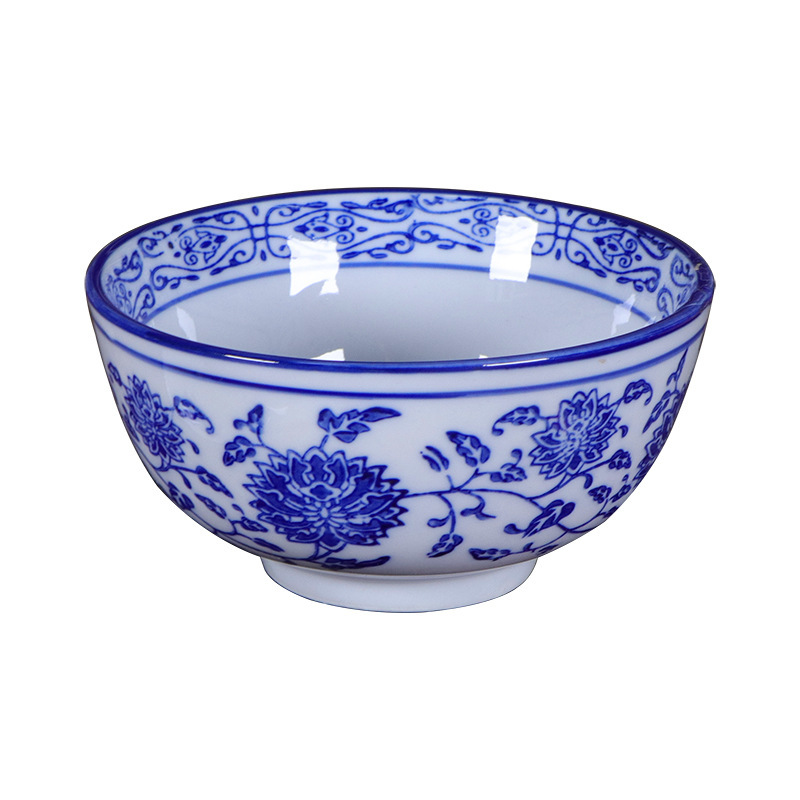 세라믹 파란색과 흰색 도자기 쌀 그릇 수프 그릇 작은 그릇 테이블 탑 밥 그릇 고온 높은 발 안티 스케일 먹는 그릇 식당 상업 가정