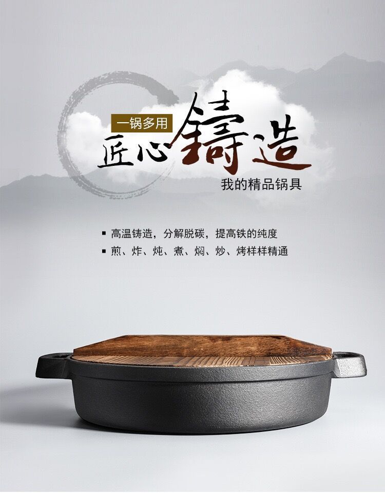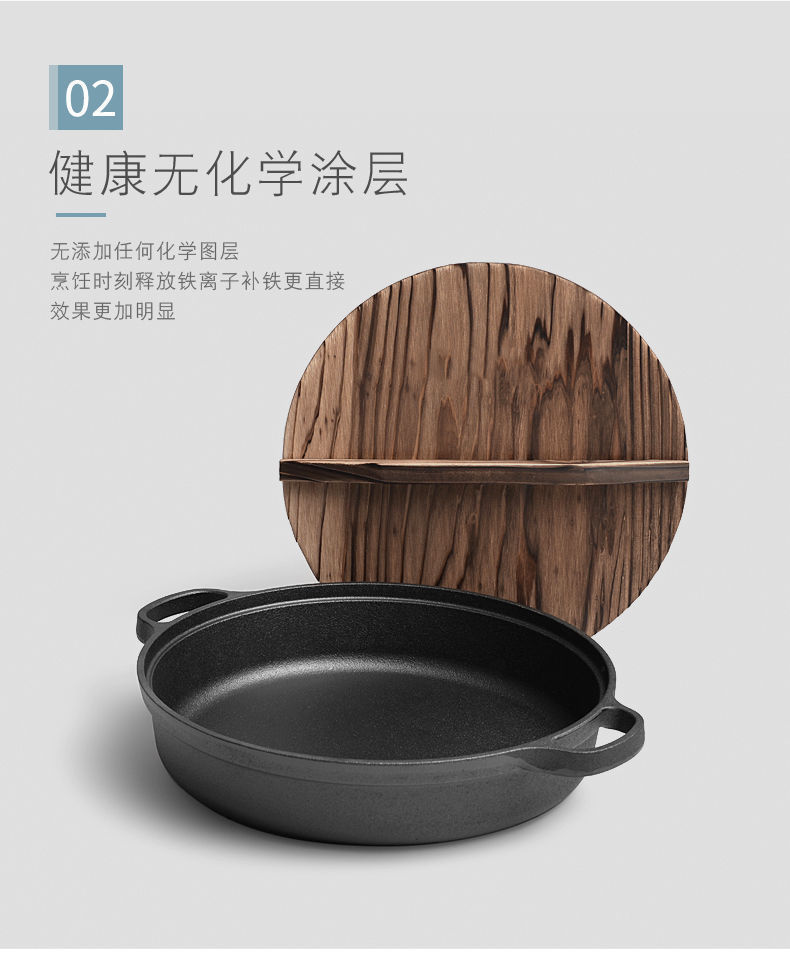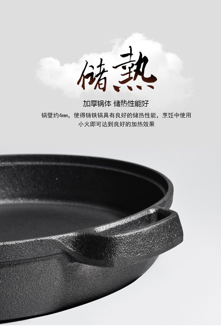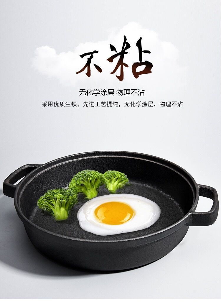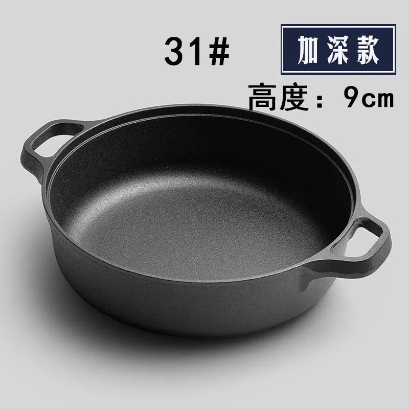 주철 냄비 플랫 하단 팬 두꺼운 구식 원시 철 냄비 코팅되지 않은 비 스틱 프라이팬 팬 팬 유니버설 유도 쿠커
