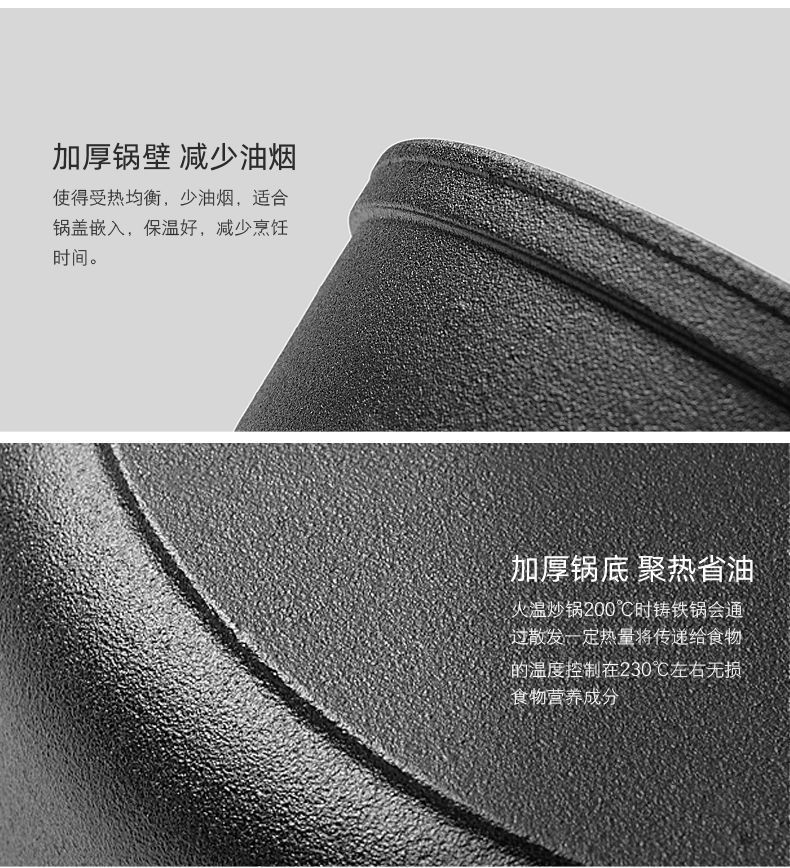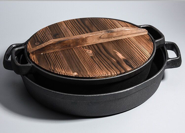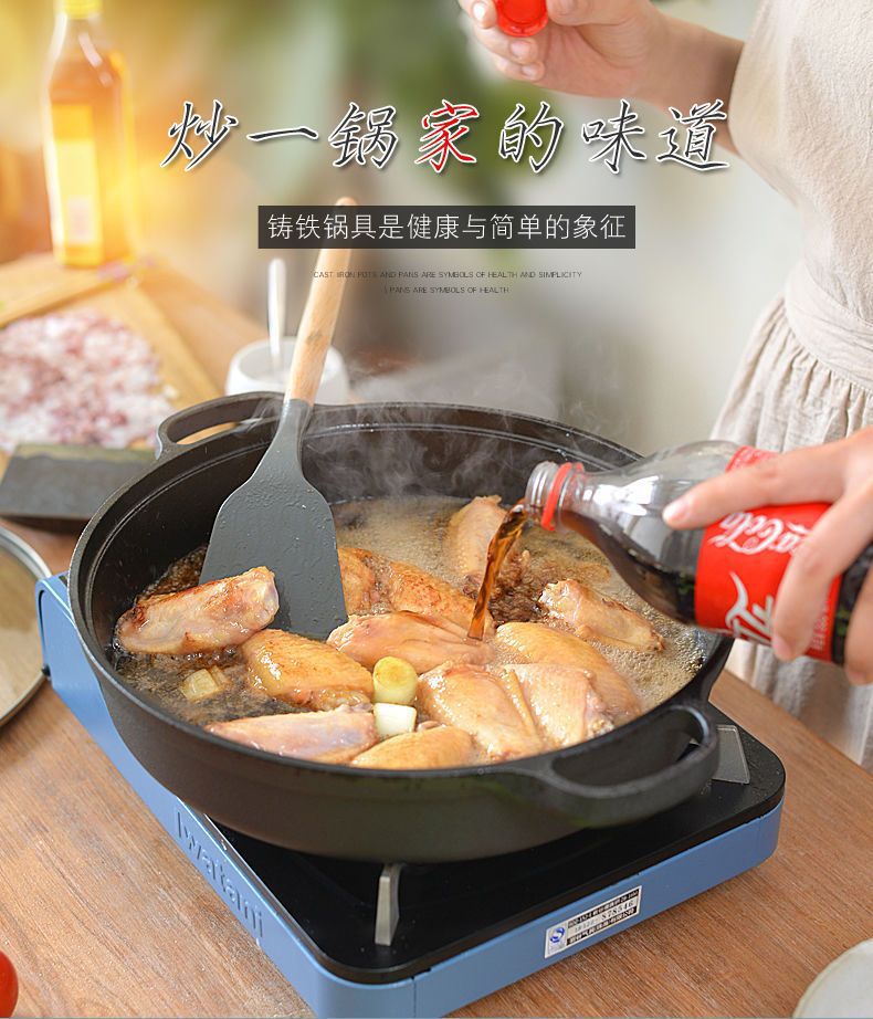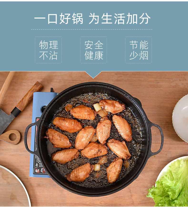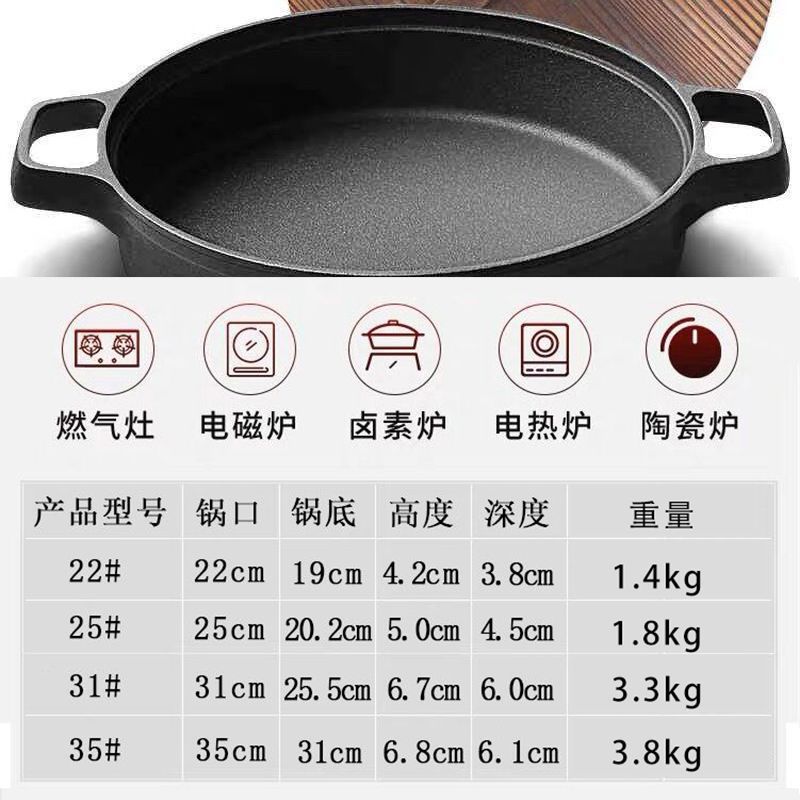 주철 냄비 플랫 하단 팬 두꺼운 구식 원시 철 냄비 코팅되지 않은 비 스틱 프라이팬 팬 팬 유니버설 유도 쿠커