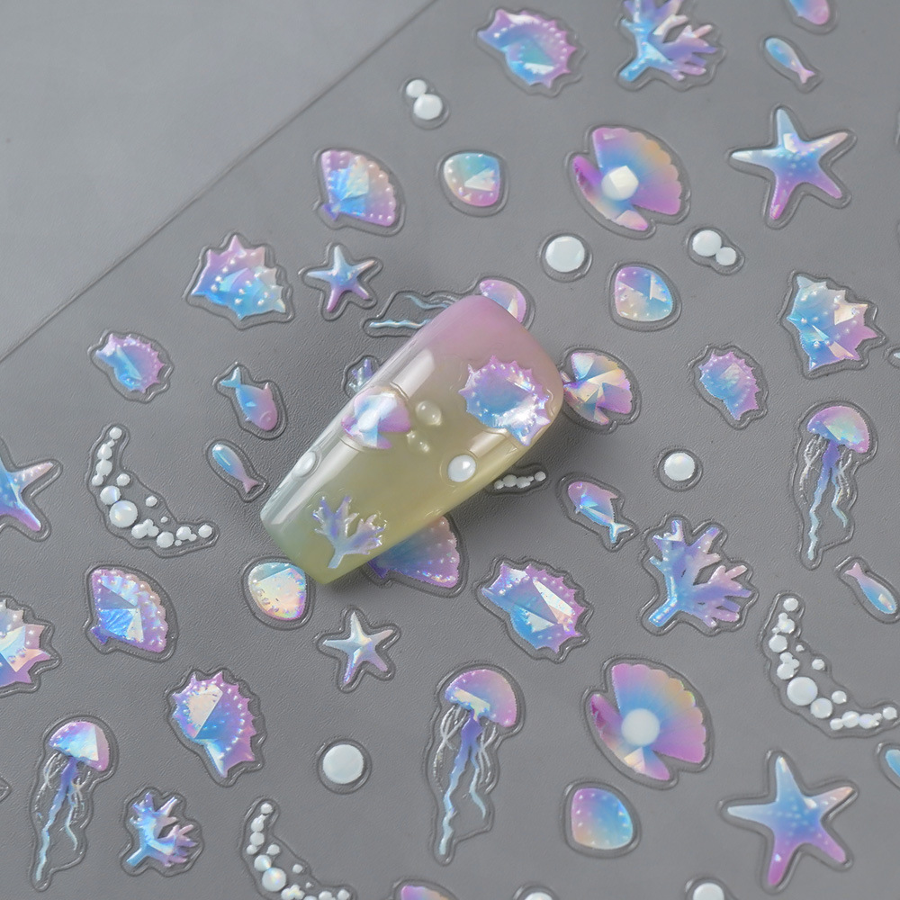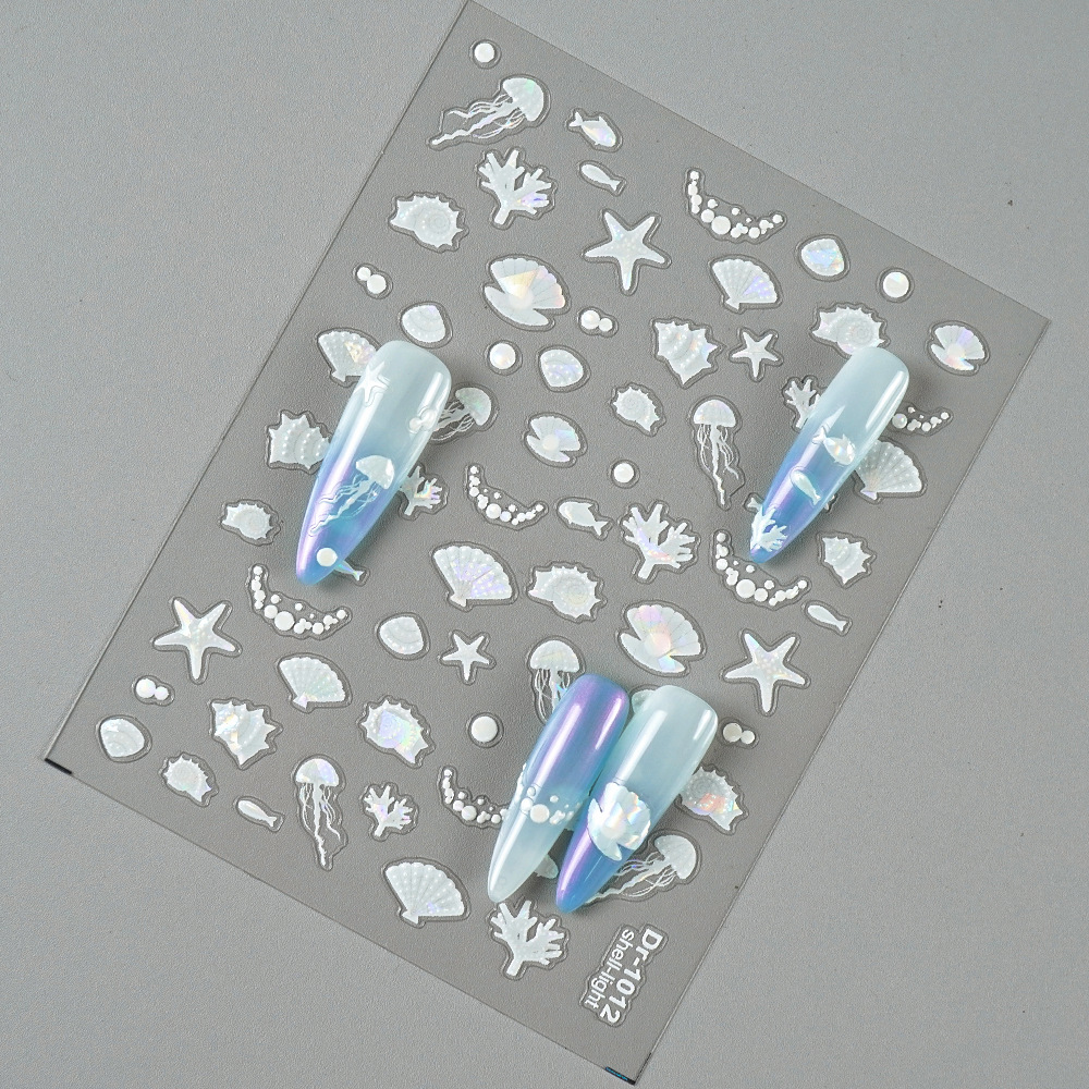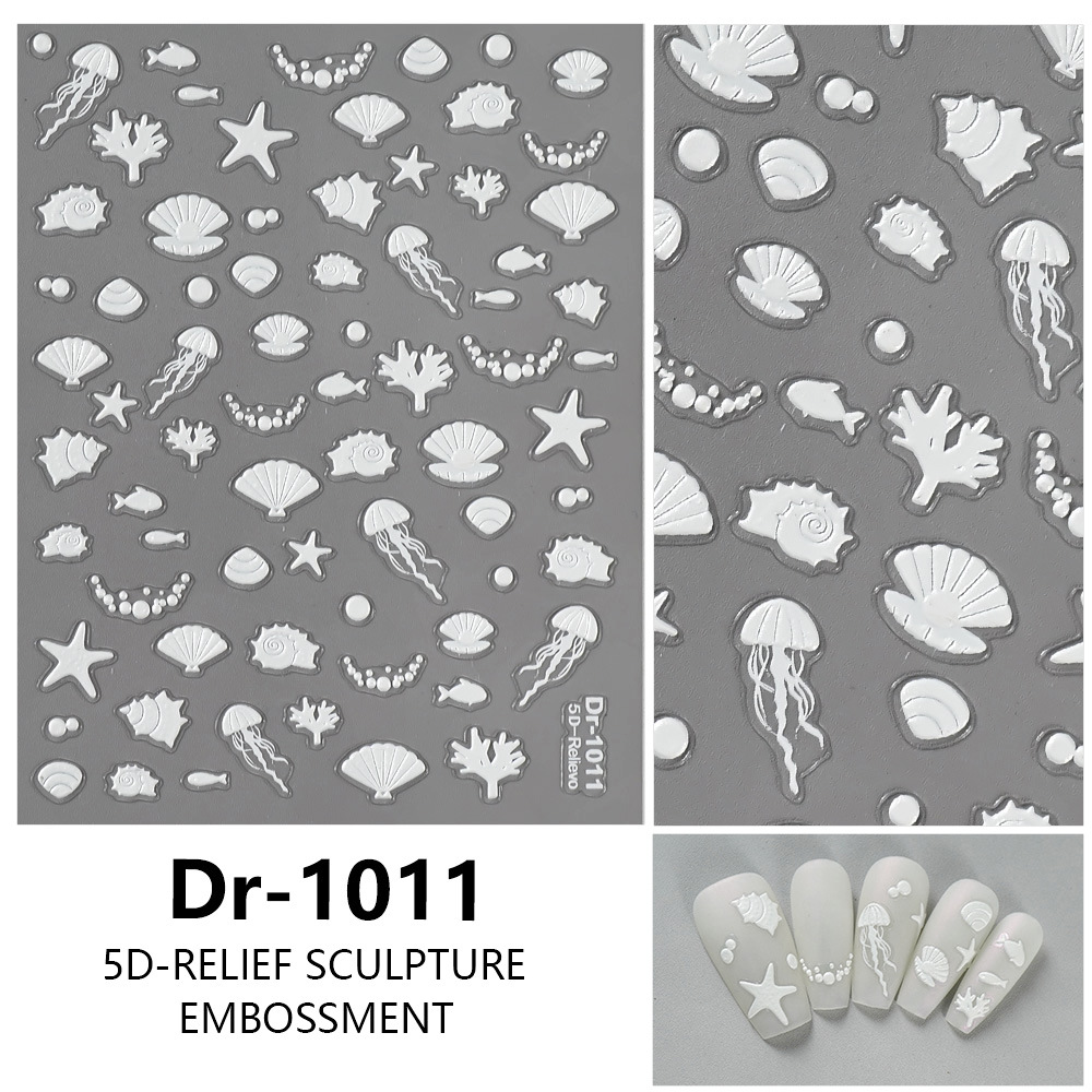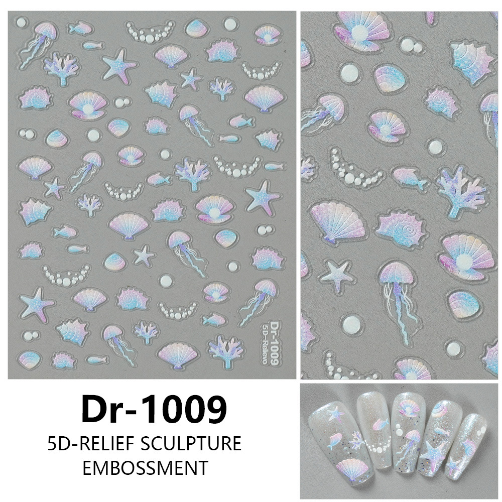 Redanco 새로운 5D 구호 폭발 해파리 불가사리 조개 조명 네일 스티커 스테레오 네일 스티커 Dr-1012