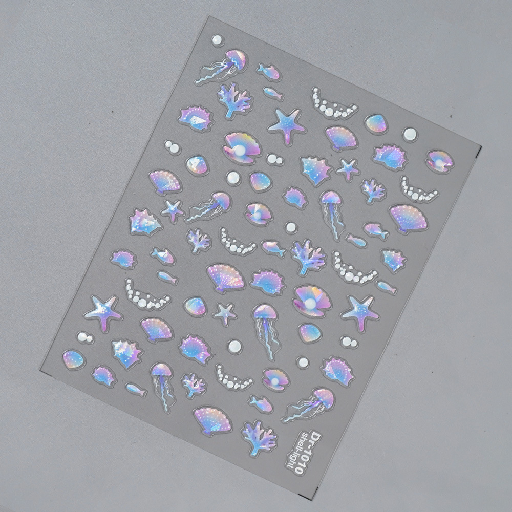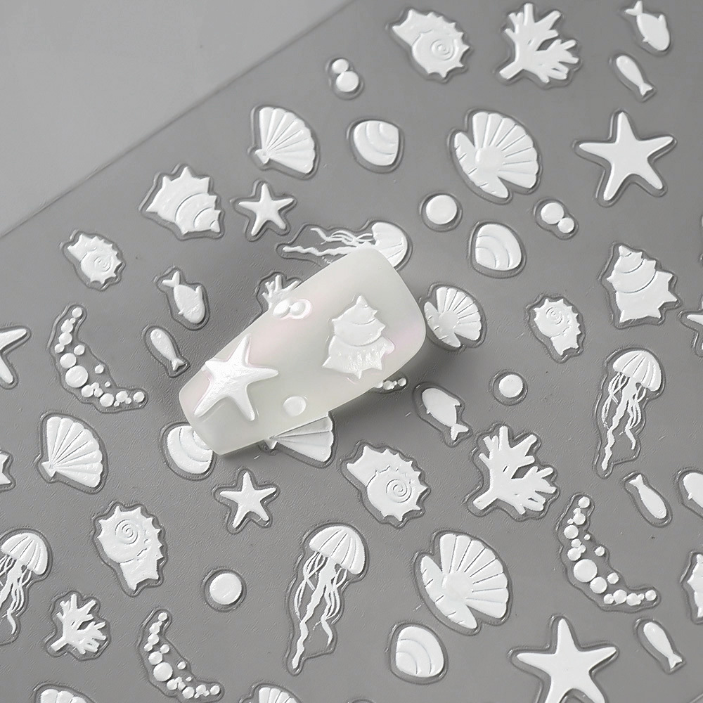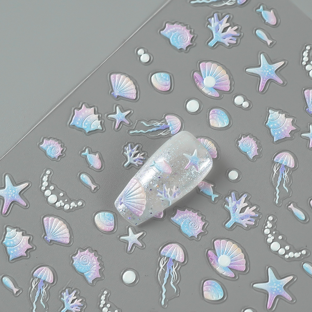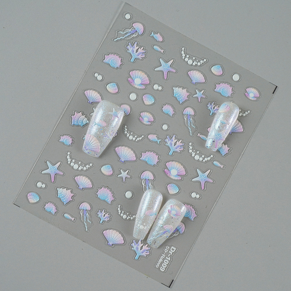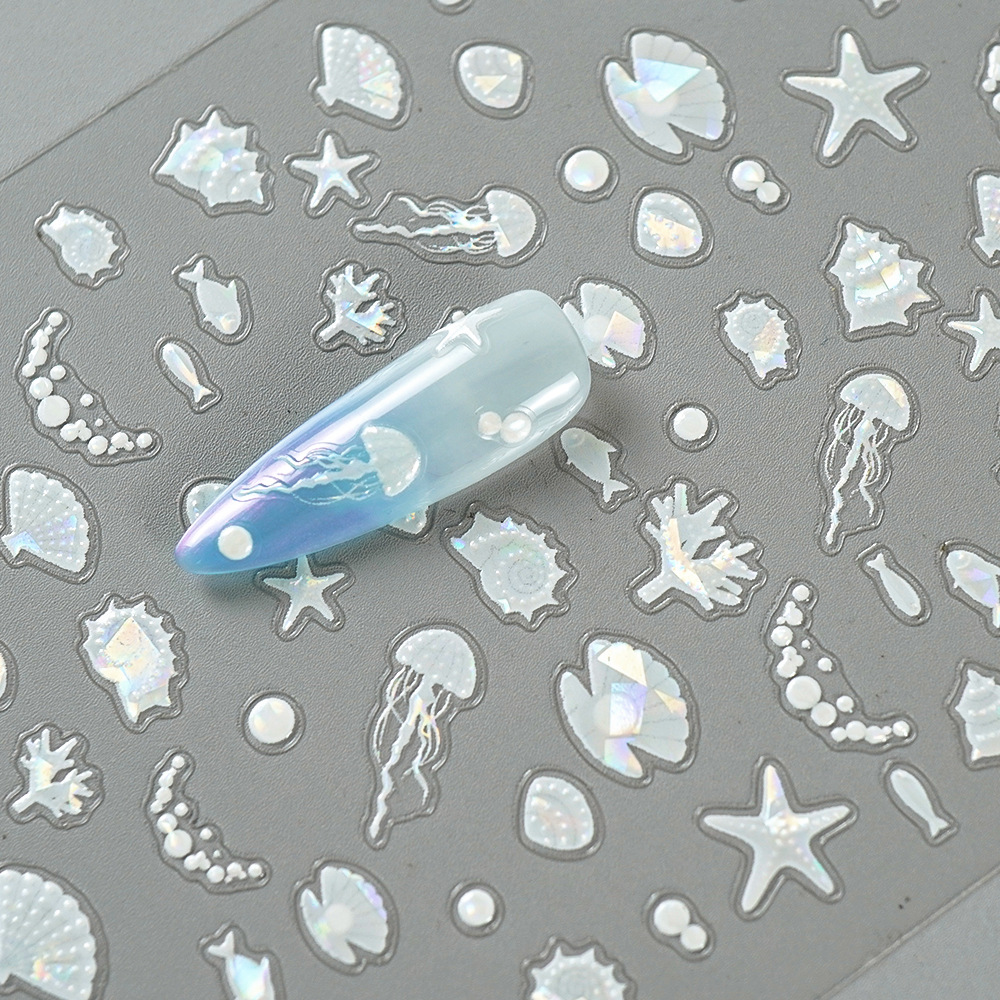 Redanco 새로운 5D 구호 폭발 해파리 불가사리 조개 조명 네일 스티커 스테레오 네일 스티커 Dr-1012