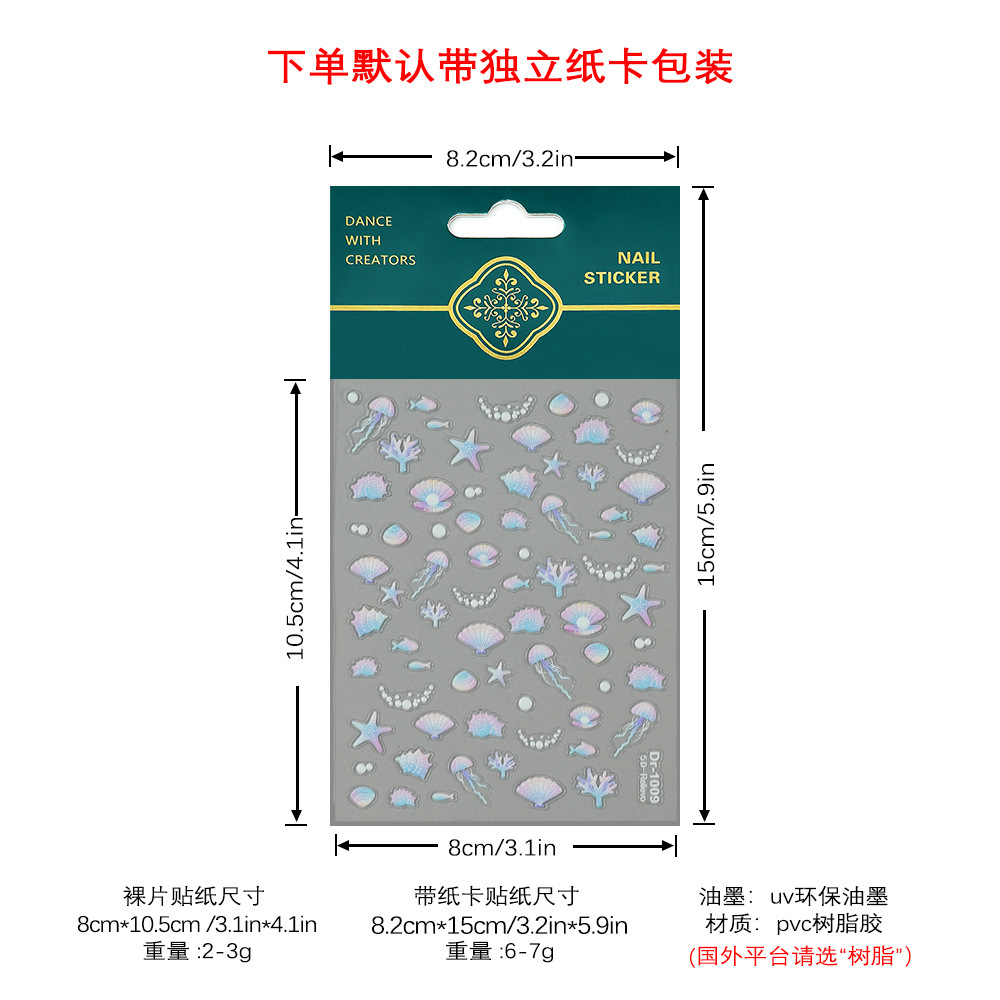 Redanco 새로운 5D 구호 폭발 해파리 불가사리 조개 조명 네일 스티커 스테레오 네일 스티커 Dr-1012스토어 가기
