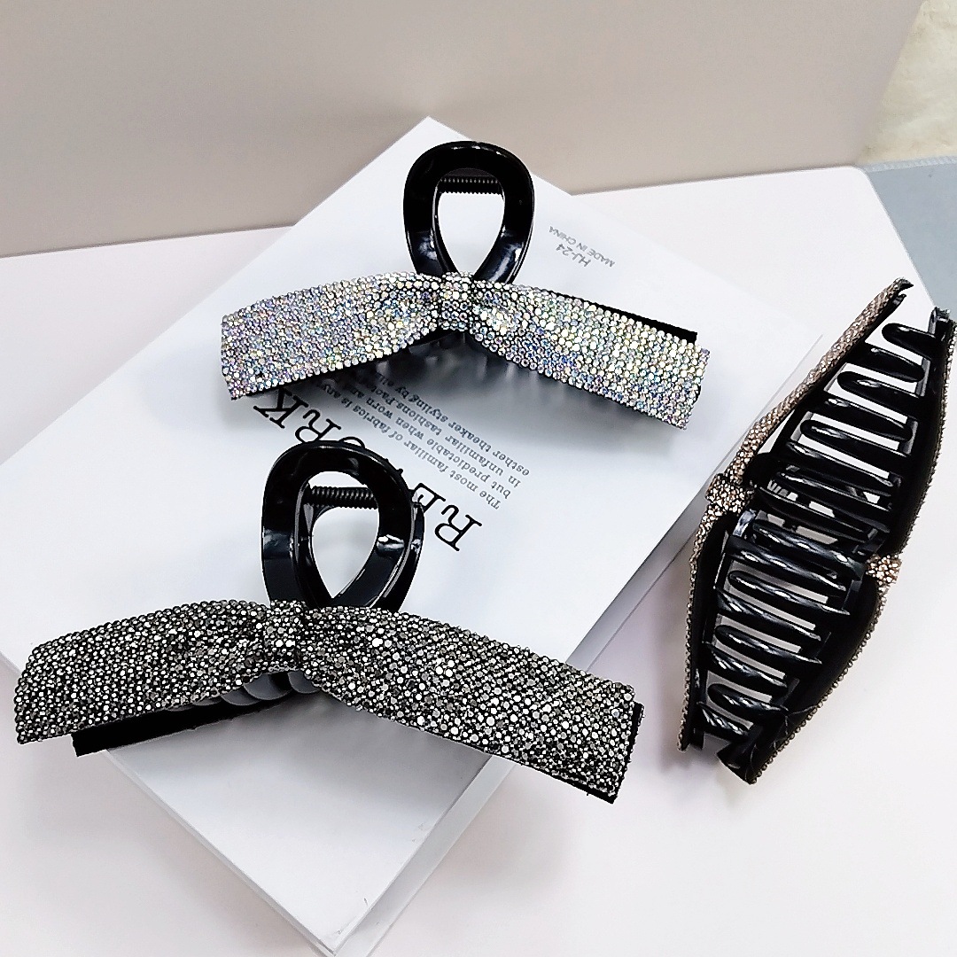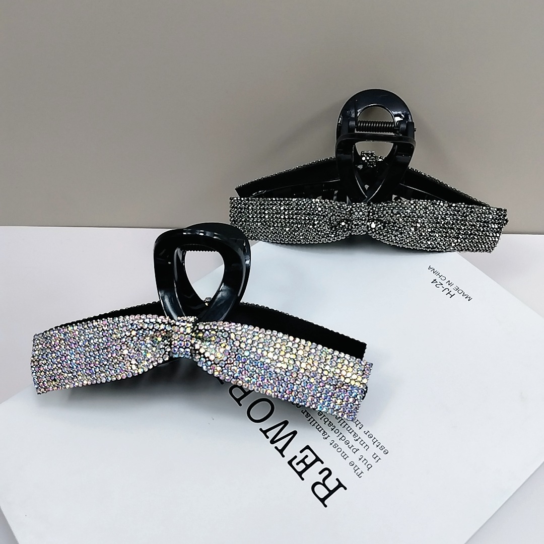 한국 Gipsophila Rhinestone 활 머리 잡아 하이 엔드 우아한 풀 다이아몬드 하이 엔드 대형 그랩 클립 여성용 헤어 액세서리 헤어핀