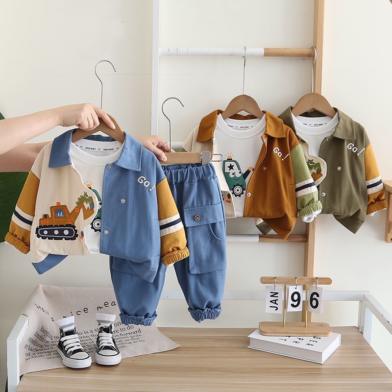 어린이 착용 소년 가을 착용 세트 2025 새로운 스타일 아기 봄과 가을 잘 생긴 만화 긴팔 3 피스 세트 트렌디스토어 가기
