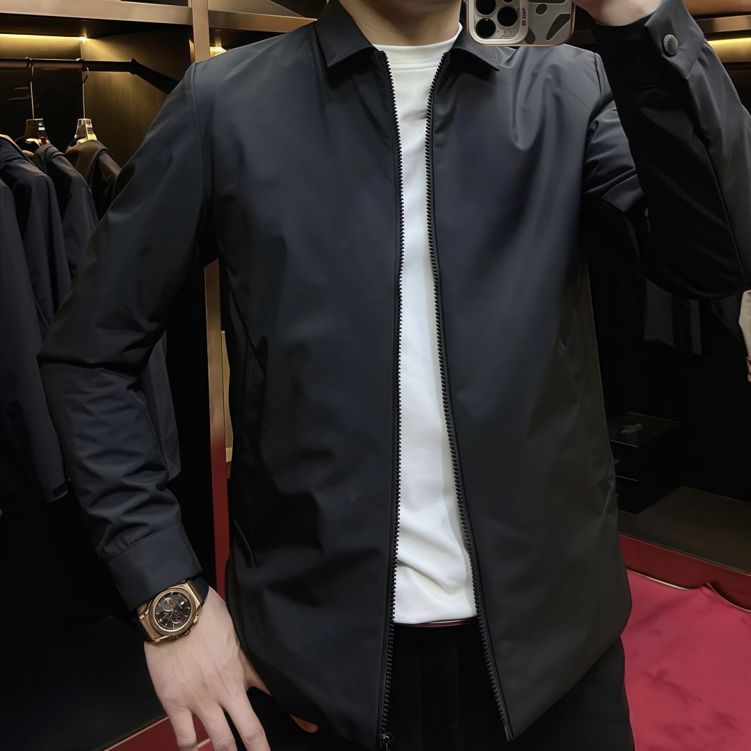 봄 새로운 남성 재킷 코트 라이트 럭셔리 비즈니스 캐주얼 3 차원 컷 간단한 착용 블랙 솔리드 컬러 탑