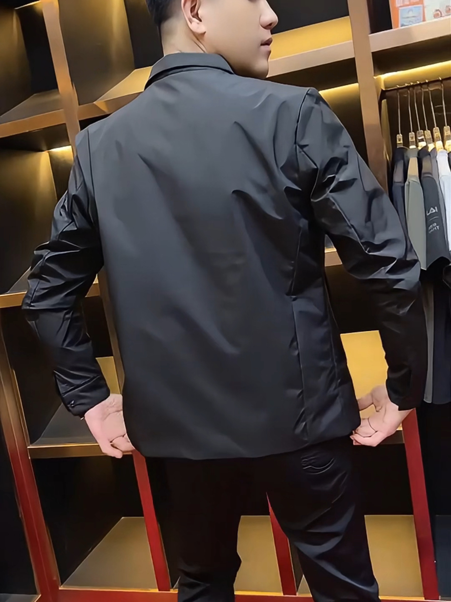 봄 새로운 남성 재킷 코트 라이트 럭셔리 비즈니스 캐주얼 3 차원 컷 간단한 착용 블랙 솔리드 컬러 탑스토어 가기