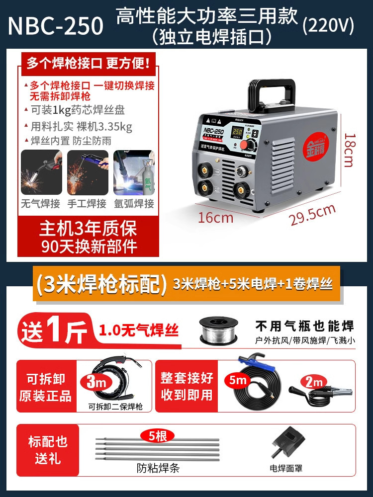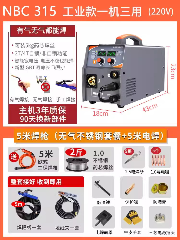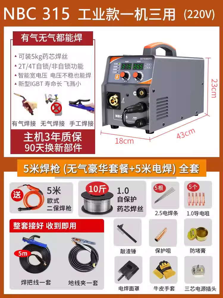 • 1-5kg 이중 목적 이중 전압 [이중 목적 세트 표준] 3m 용접 건 + 5m 용접 핸들 + 1