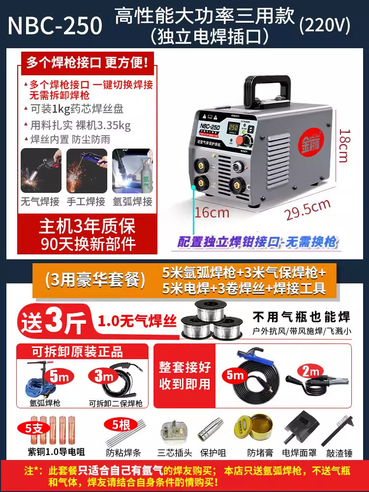 • 1-5kg 이중 목적 이중 전압 [이중 목적 고급 완전 세트] 3m 용접 건 + 5m 용접 핸들 +