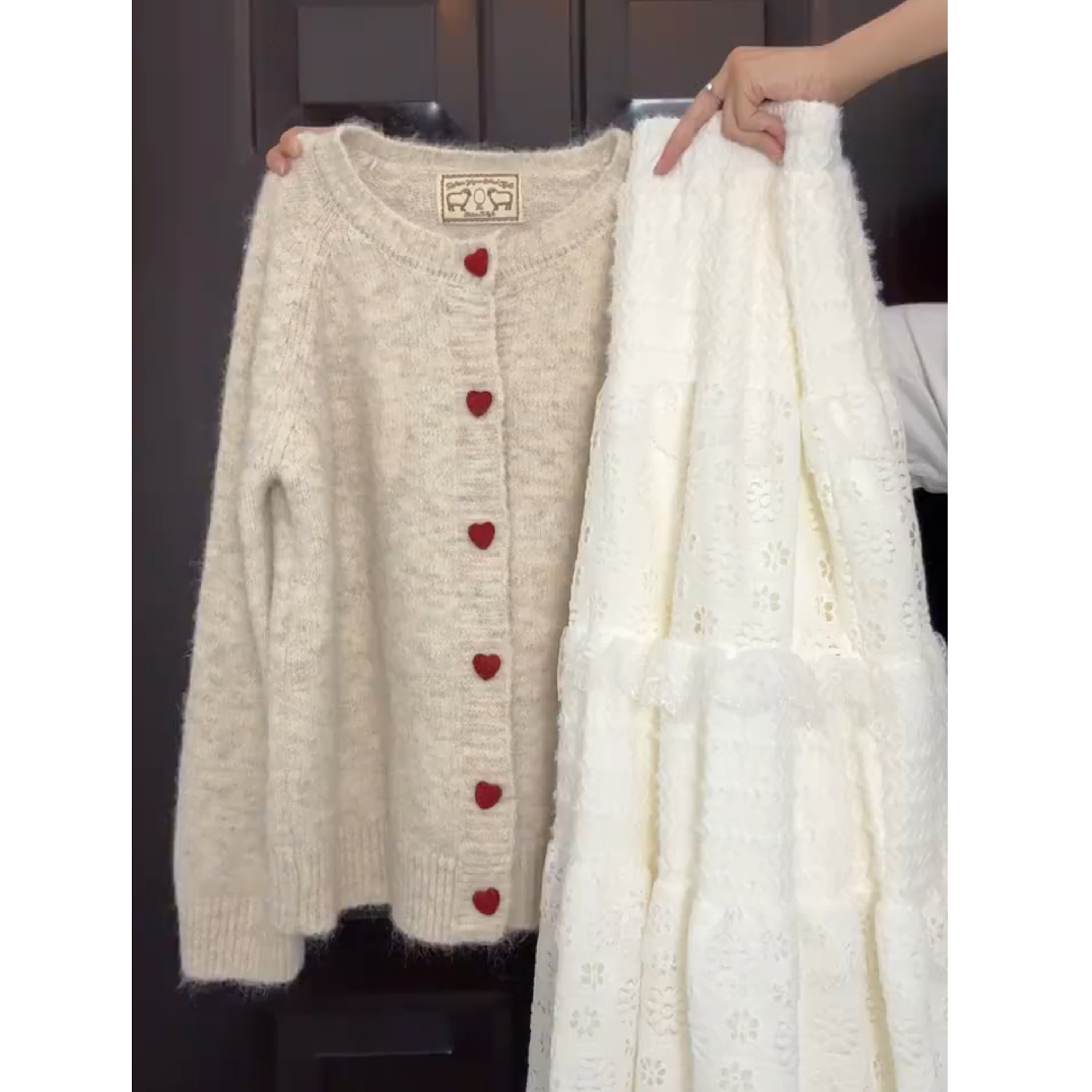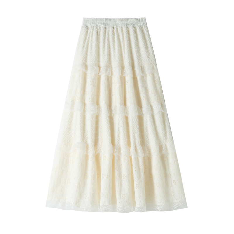 아이보리 레이스 케이크 스커트 여성의 봄과 가을 A 라인 스커트 높은 허리 슬리밍 용량 캐주얼 우산 스커트 롱 스커트스토어 가기
