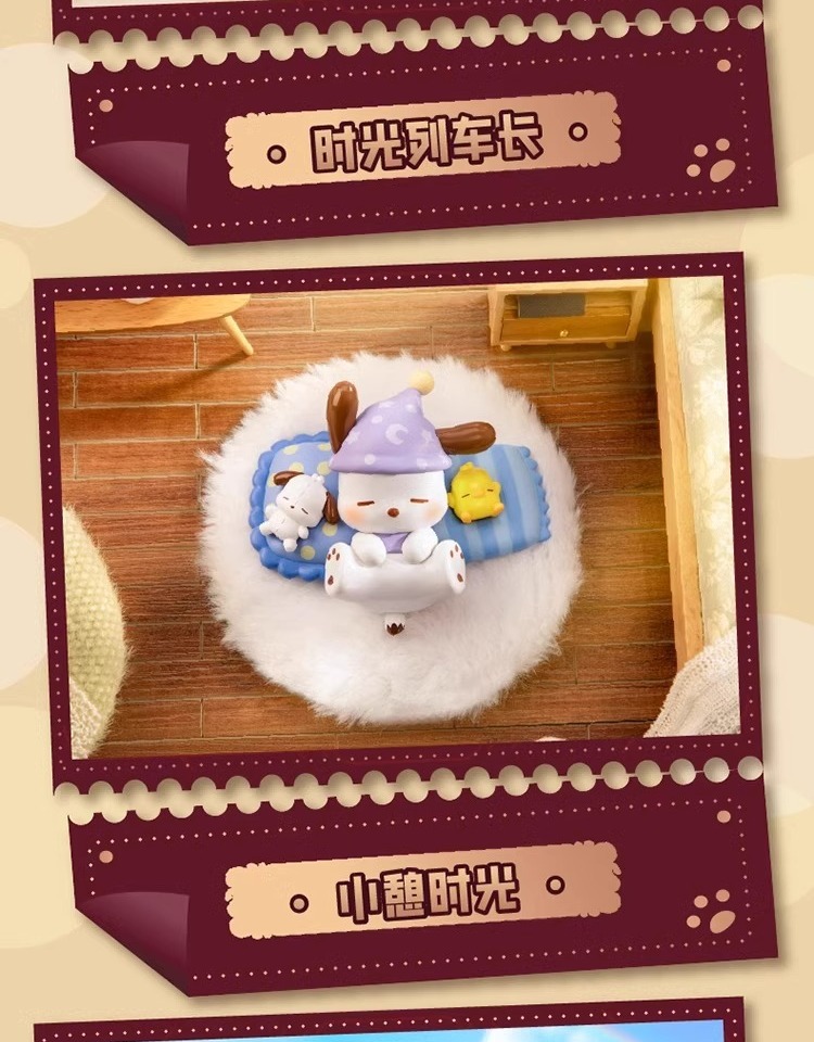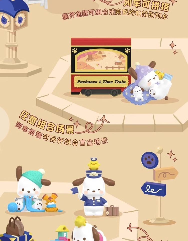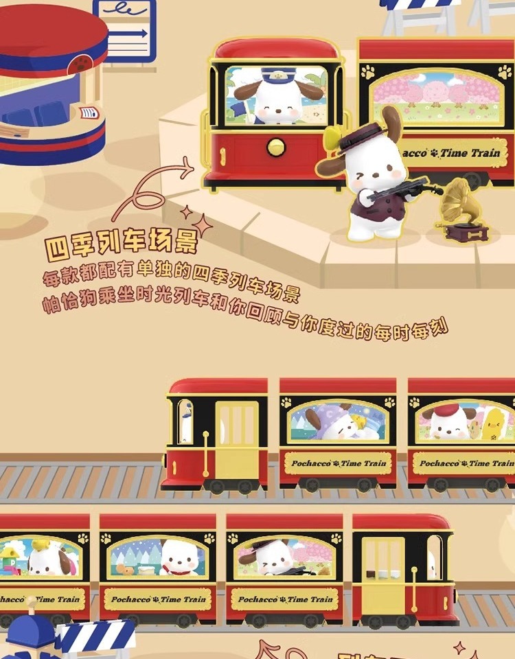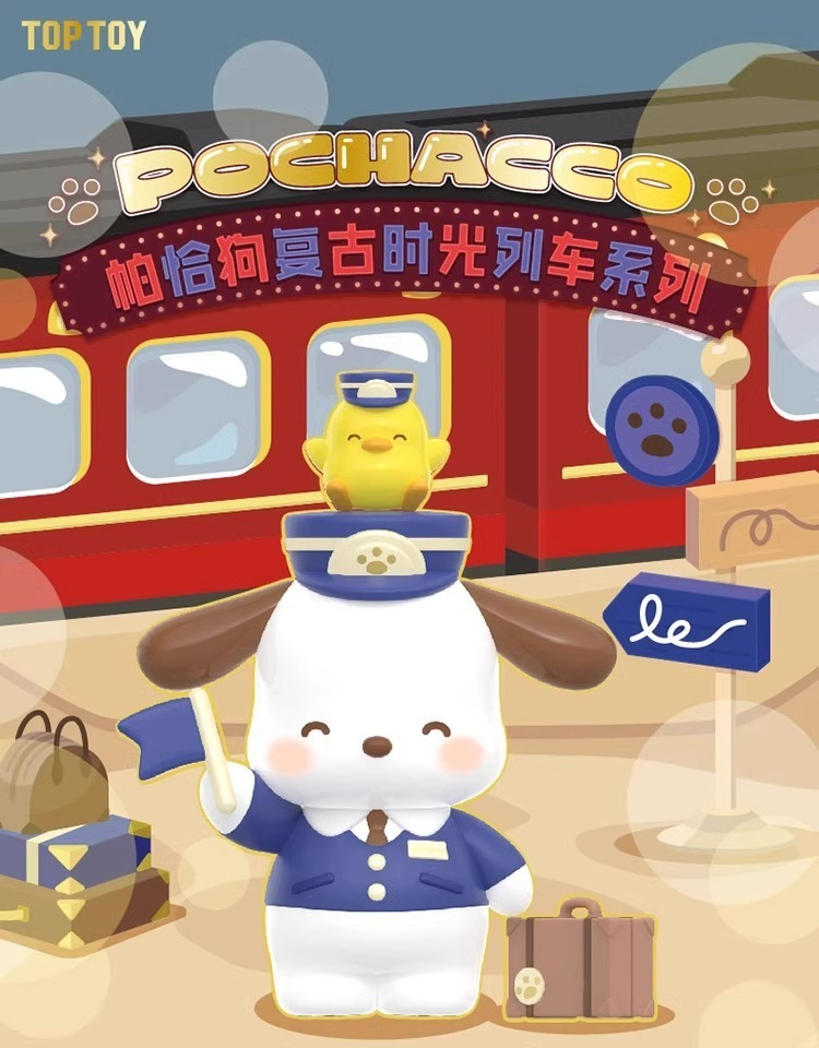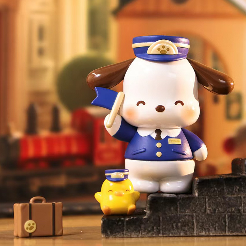 정품 Sanrio Pacha 개 복고풍 타임 트레인 블라인드 박스 트렌디 플레이 손으로 만든 인형 선물 장식품스토어 가기