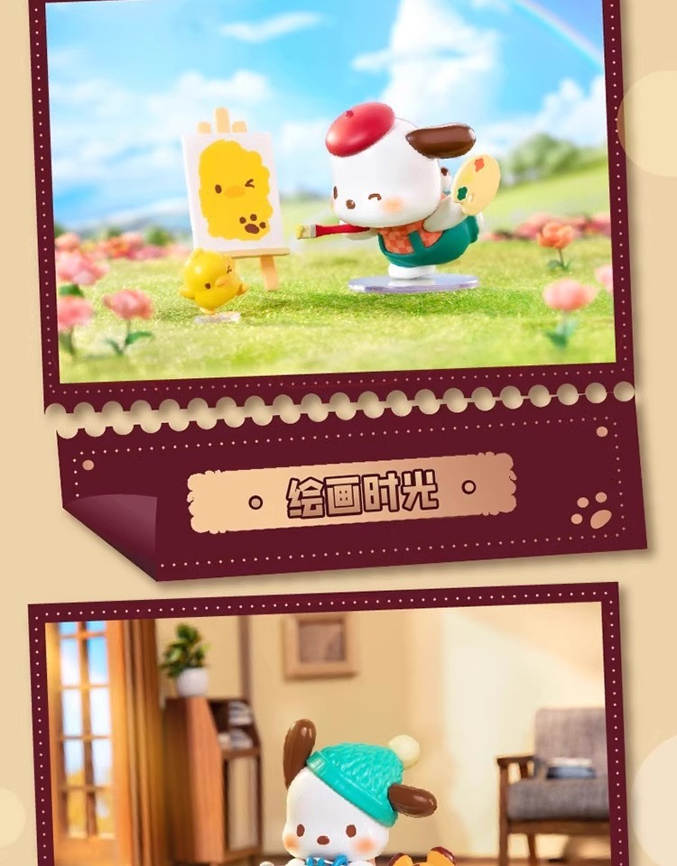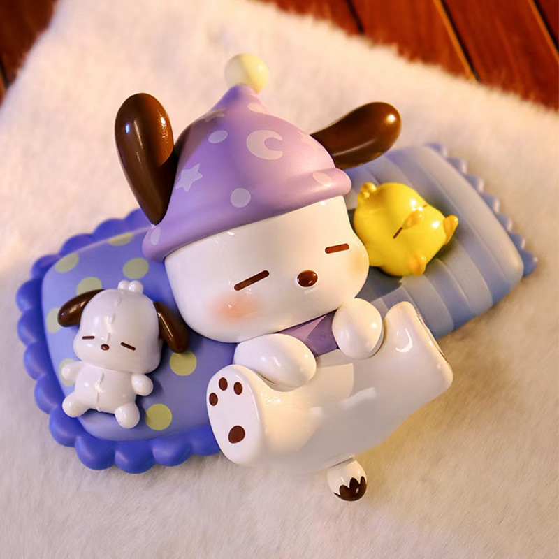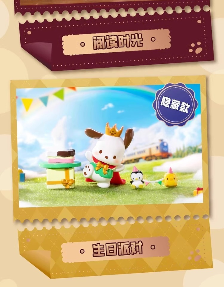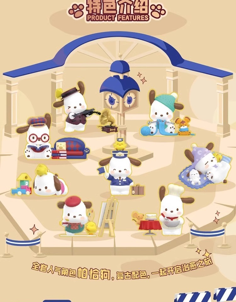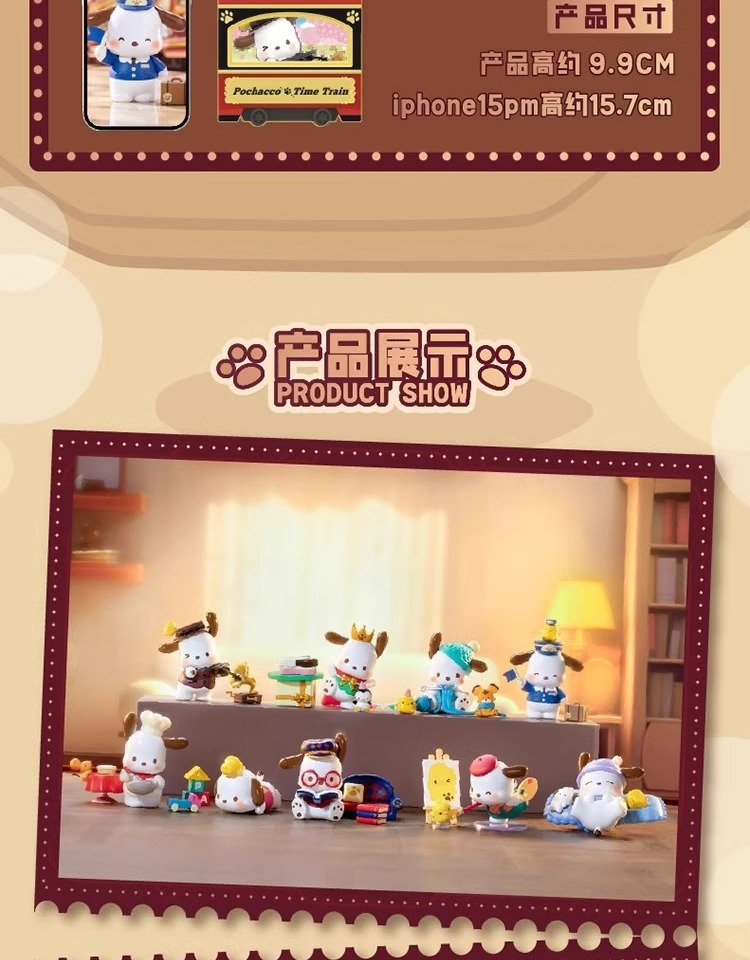 정품 Sanrio Pacha 개 복고풍 타임 트레인 블라인드 박스 트렌디 플레이 손으로 만든 인형 선물 장식품스토어 가기