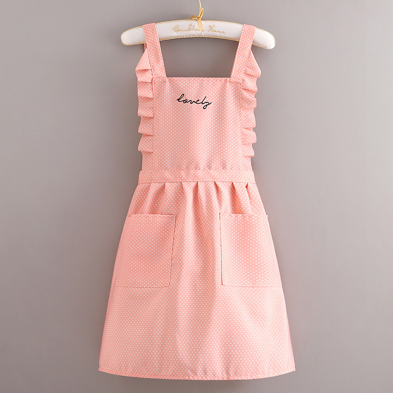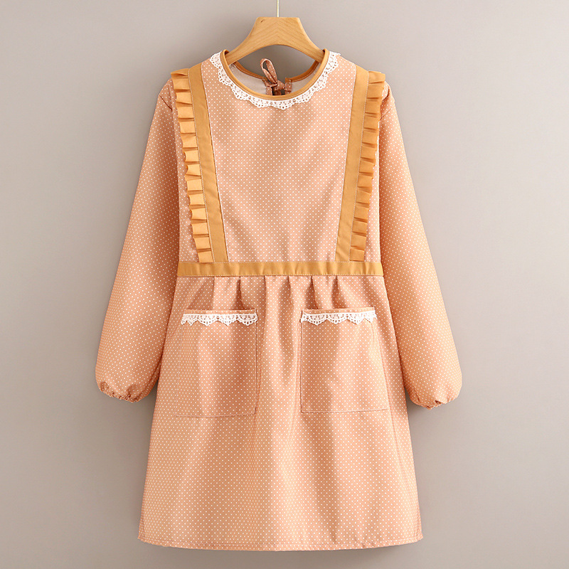 • 캔버스 긴팔 도트 레이스 스커트 [핑크] + 앞치마
