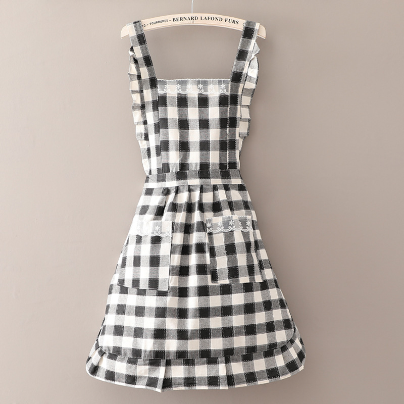 • 면긴팔큰체크무늬 레이스스커트[블랙] + 앞치마