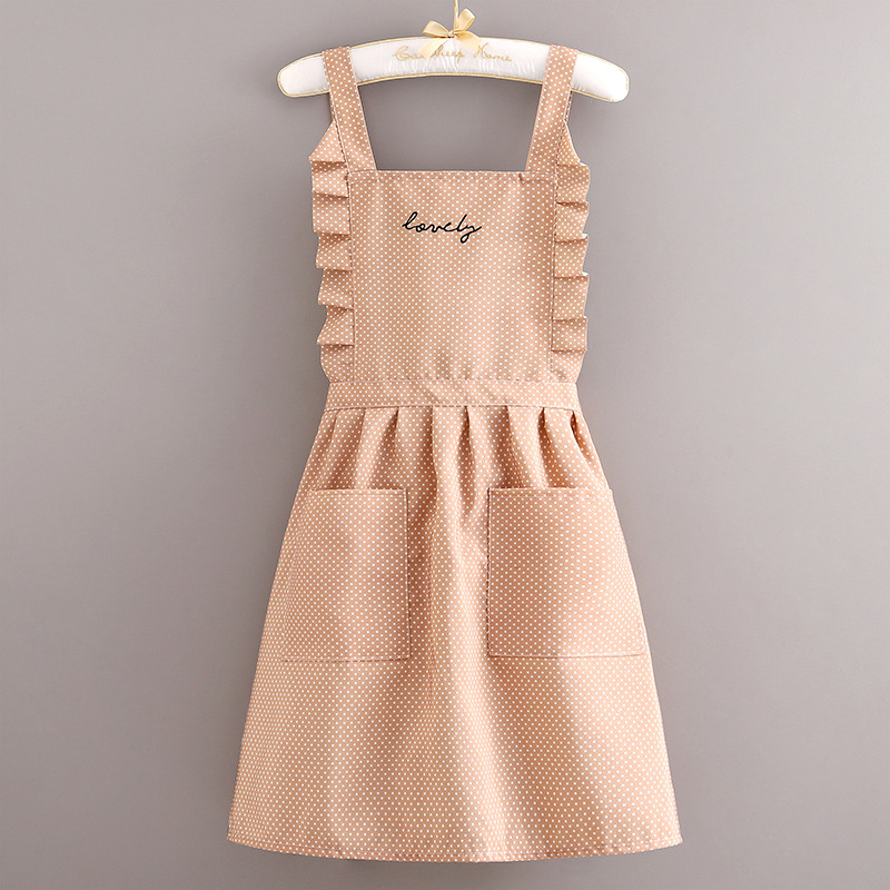 • 캔버스 긴팔 도트 레이스 스커트 [카키] + 앞치마
