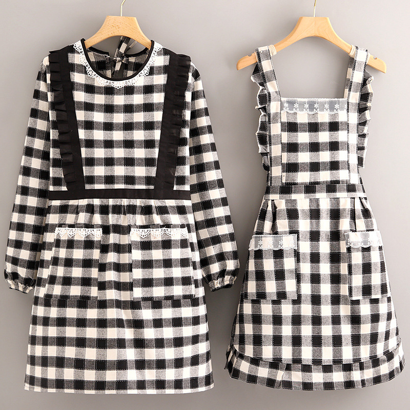 • 코튼 서스펜더 라지 체크 더블 레이어 공주 드레스 [블랙]