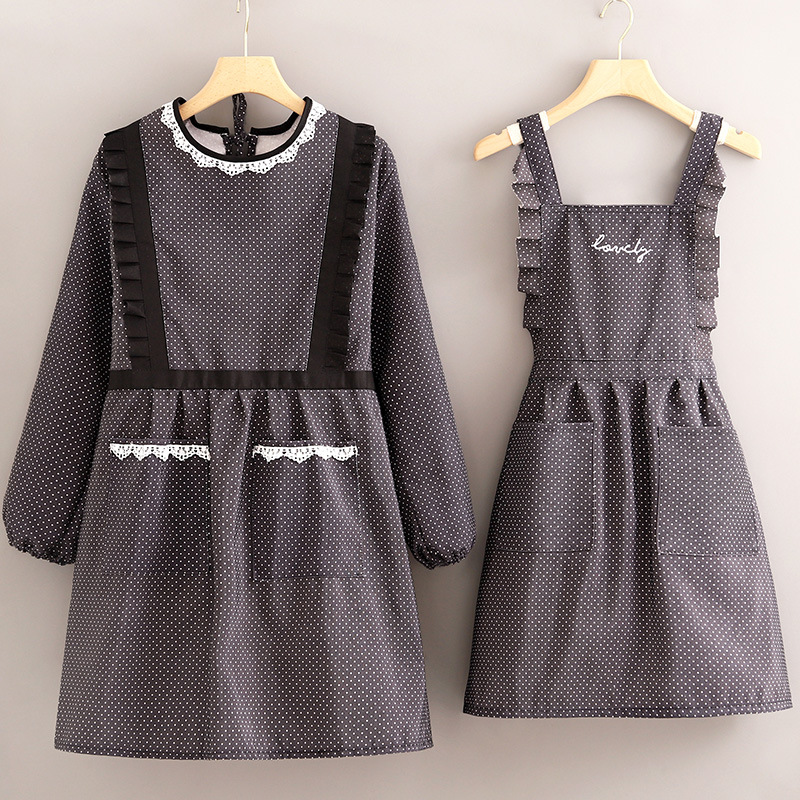 • 캔버스 긴팔 도트 레이스 스커트[블랙] + 앞치마