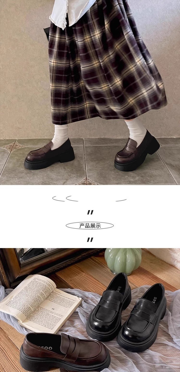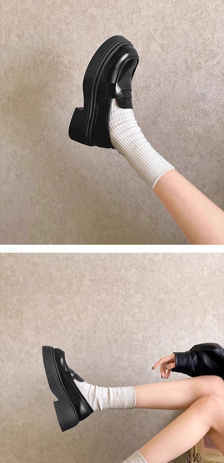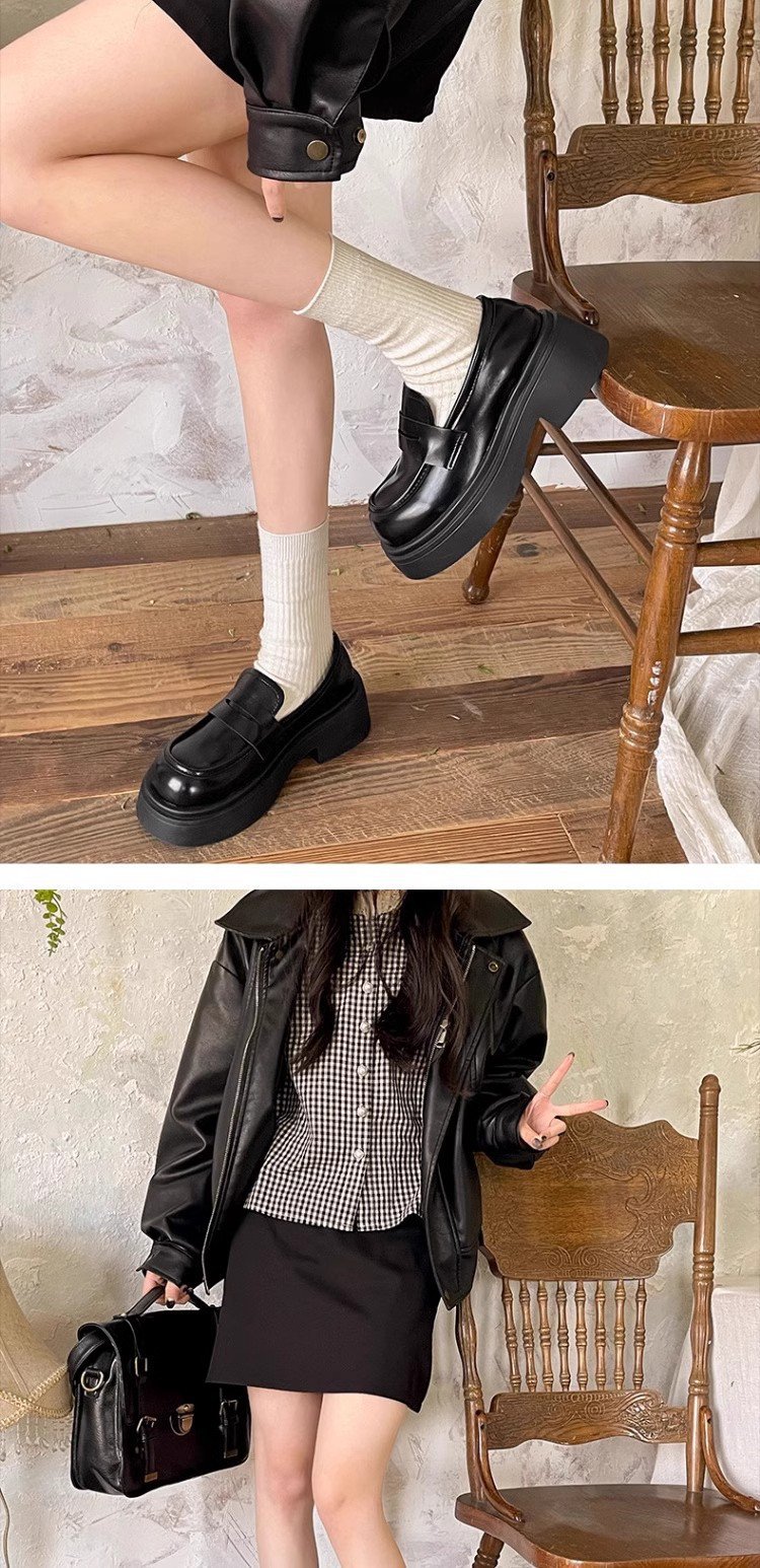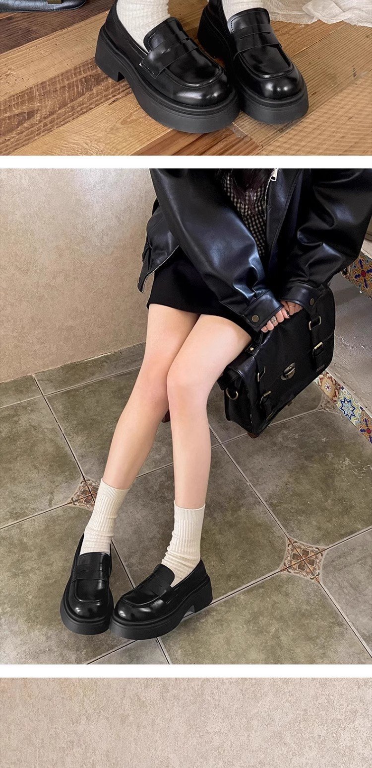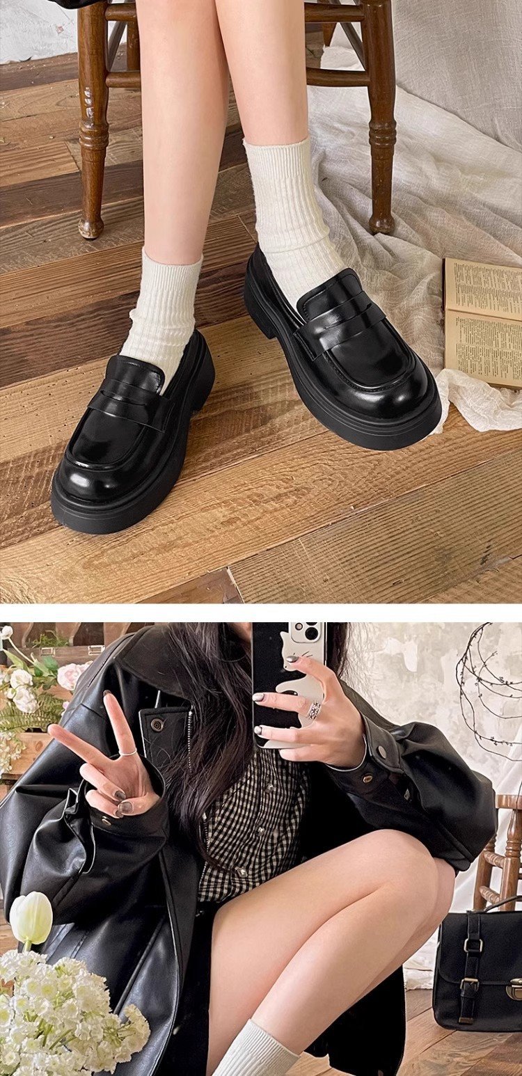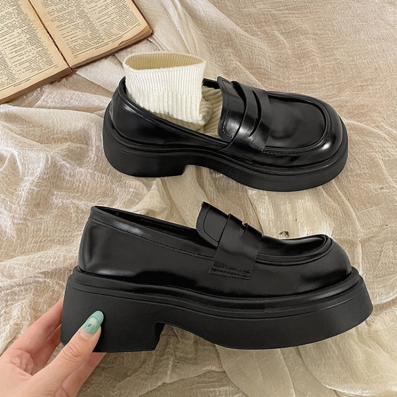 검은 영국 스타일의 복고풍 고층 두꺼운 밑창 작은 가죽 신발 여성의 2025 년 봄과 가을 한 단계 Mary Jane 로퍼 도매스토어 가기