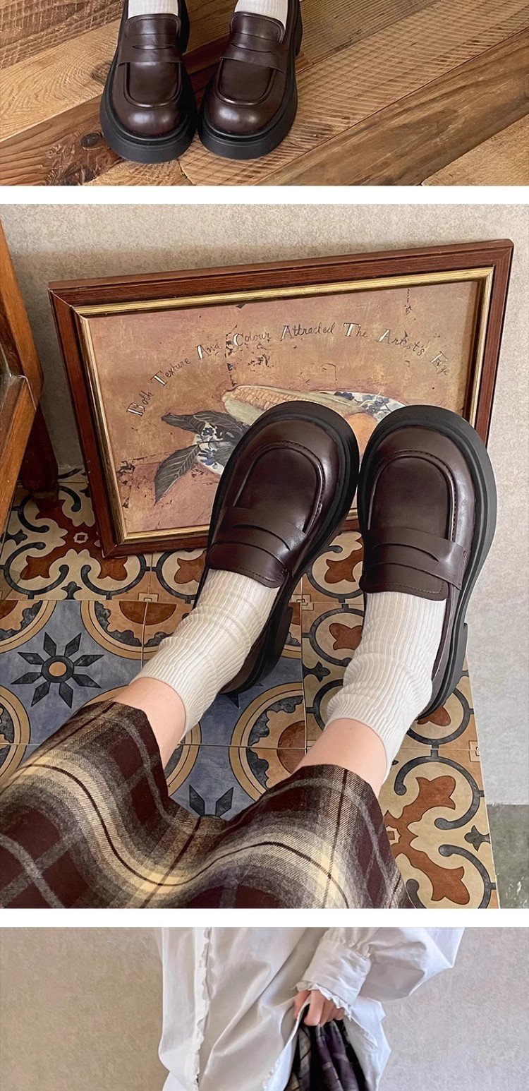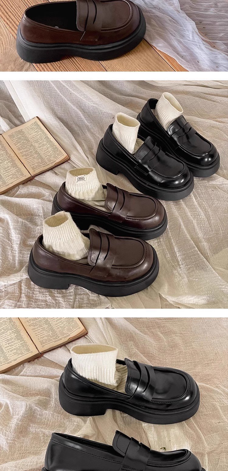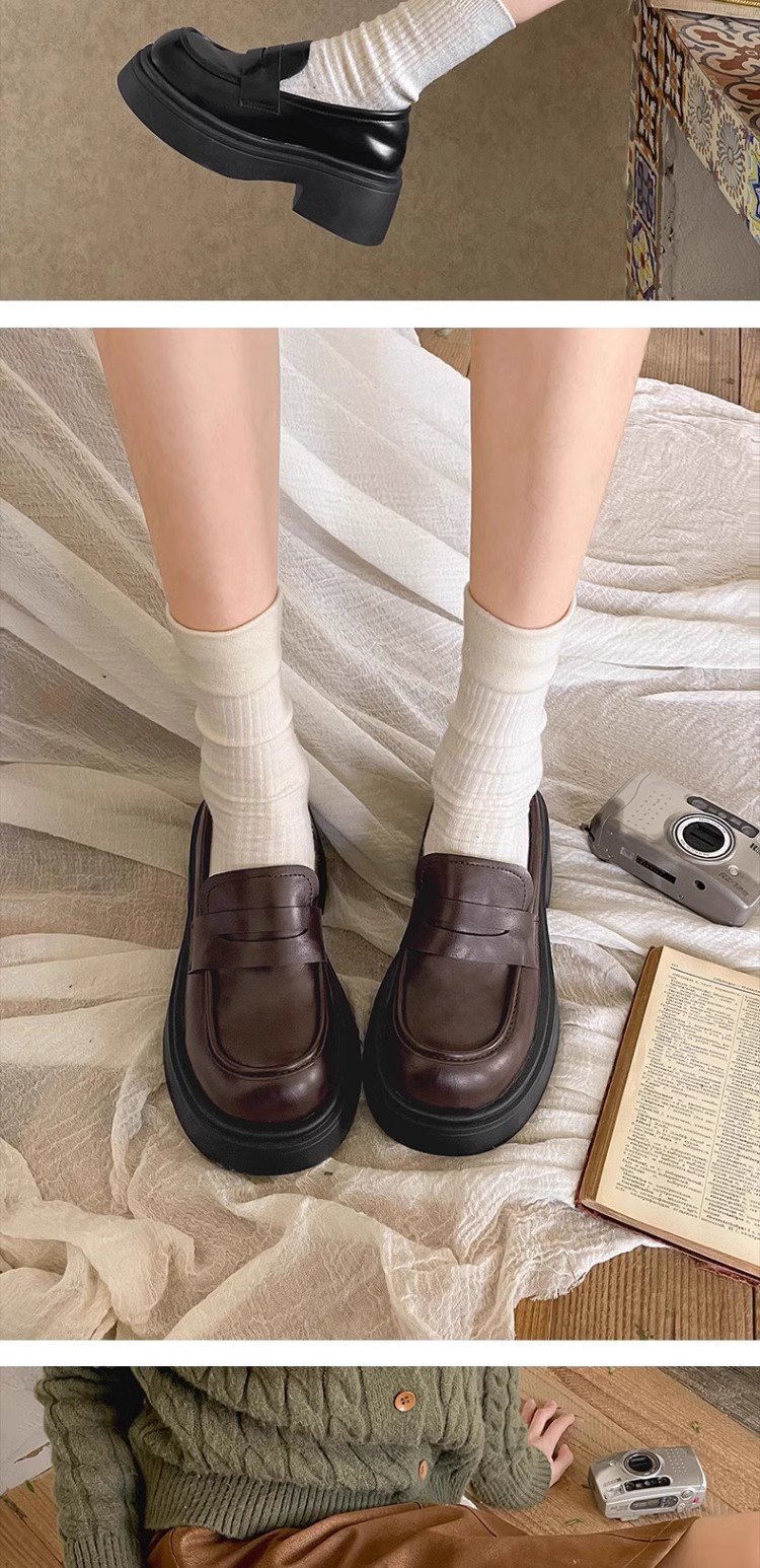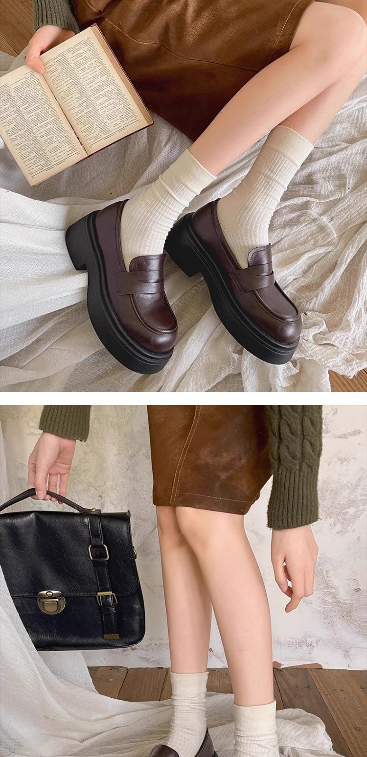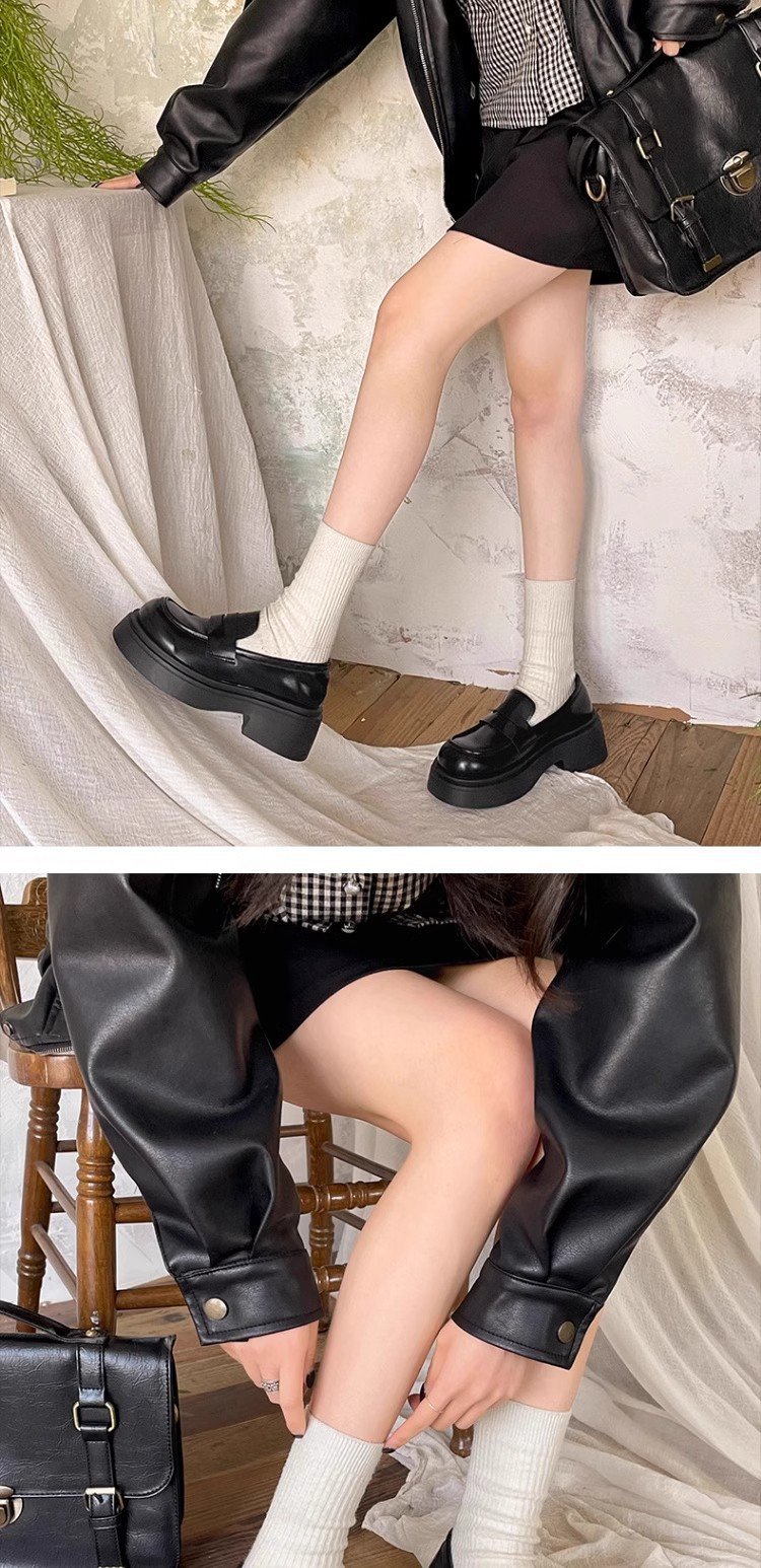검은 영국 스타일의 복고풍 고층 두꺼운 밑창 작은 가죽 신발 여성의 2025 년 봄과 가을 한 단계 Mary Jane 로퍼 도매스토어 가기