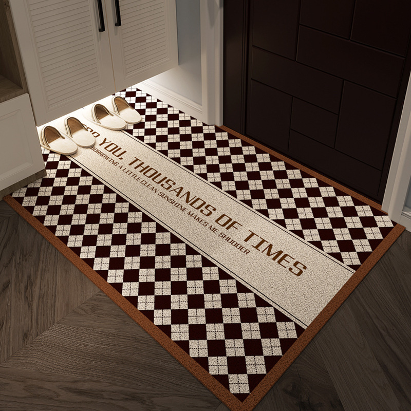 아메리칸 스타일 레트로 도어 매트 인터넷 빨간 격자 무늬 실크 링 바닥 매트 가정용 야외 지구 문지름 착용 방지 도어 미끄럼 방지 매트