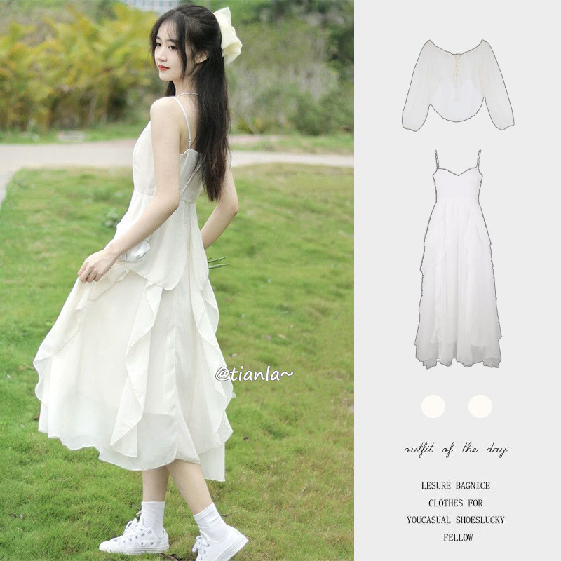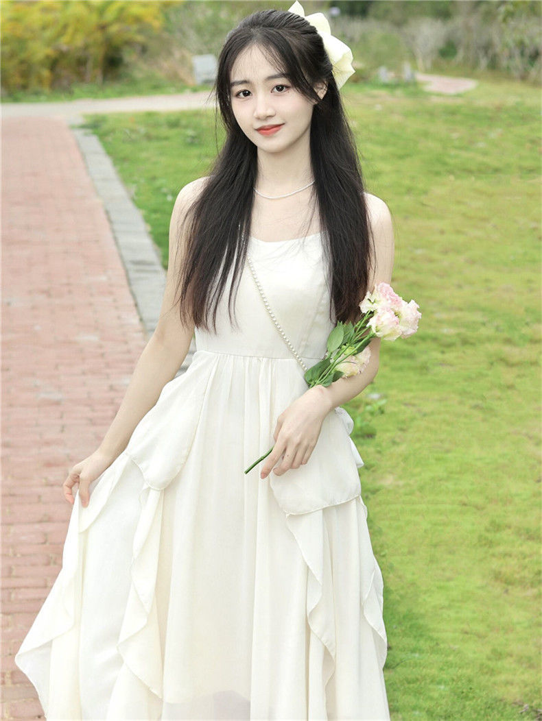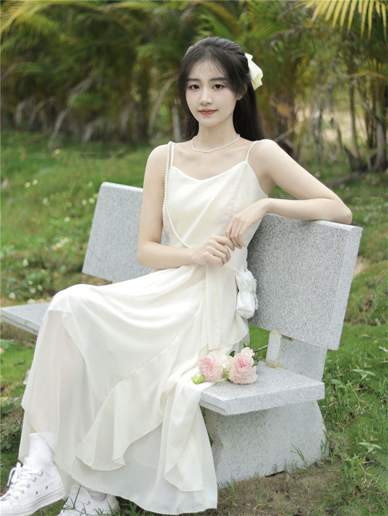 해변 휴일 슈퍼 요정 우아한 러플 슬링 원피스 여성 여름 싼야 여행복 사진 비치 원피스스토어 가기