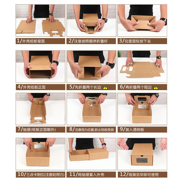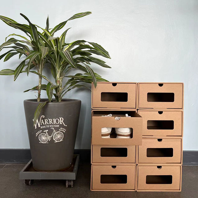투명 신발 상자 저장 상자 두꺼운 크래프트 종이 기숙사 신발 간단한 서랍 유형 종이 상자 먼지 방지 유물