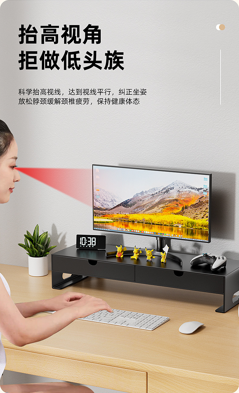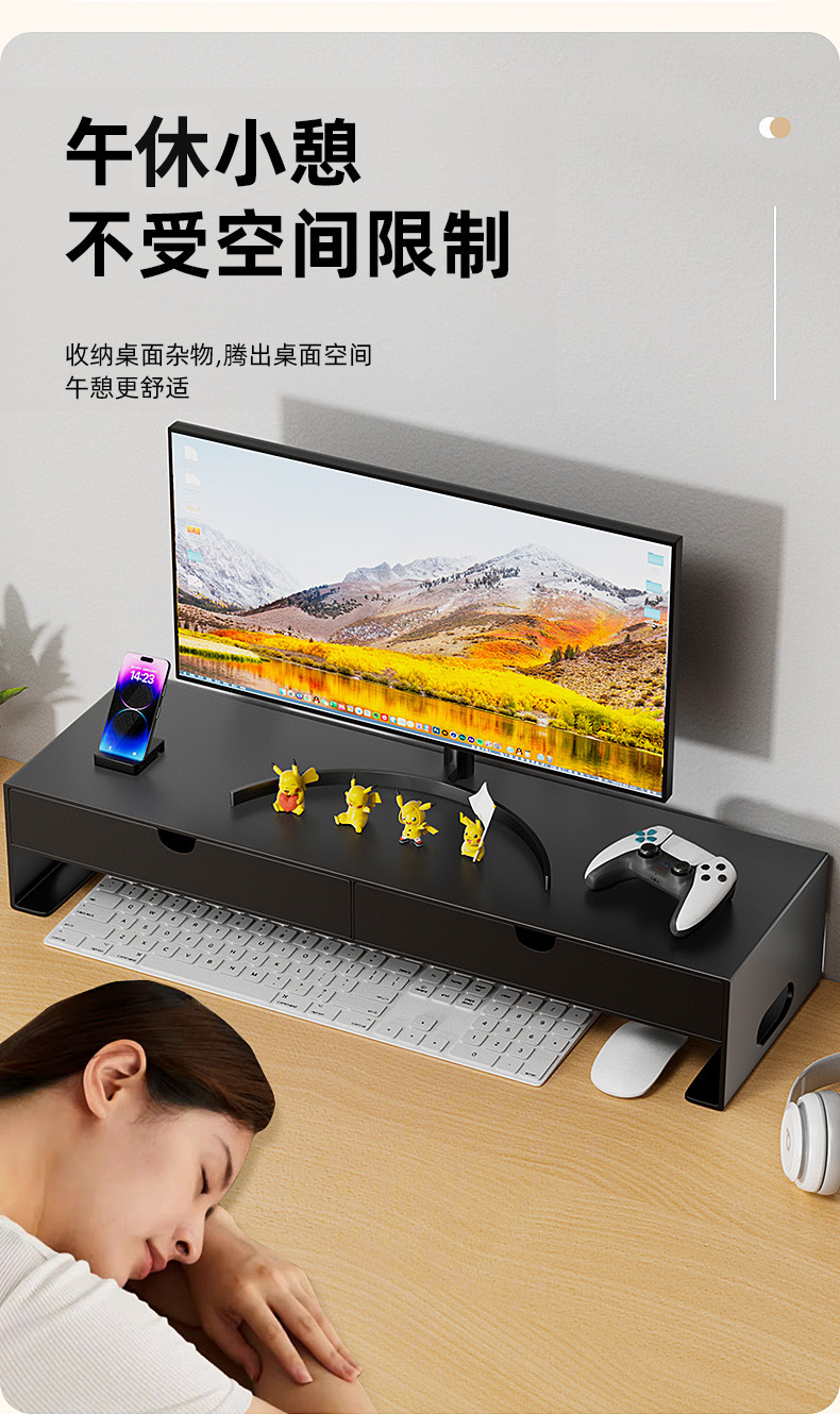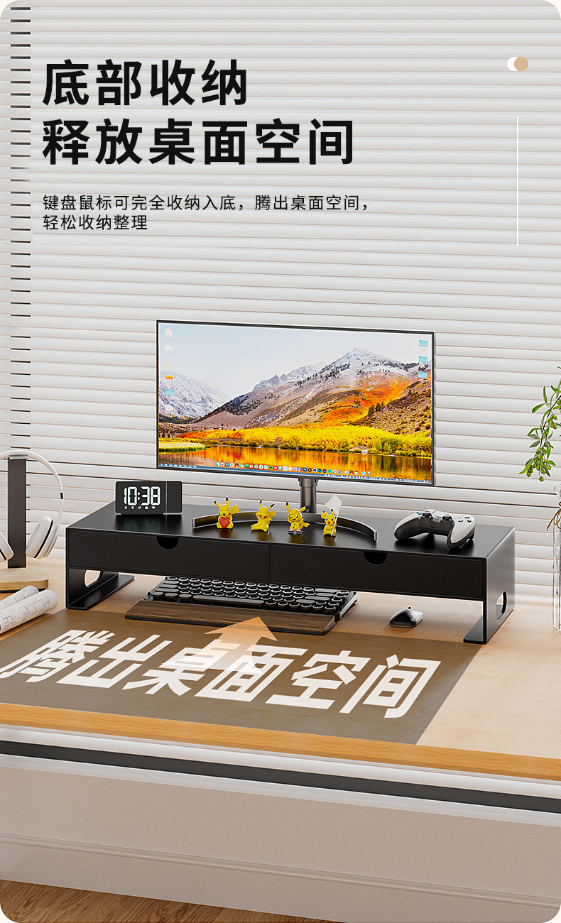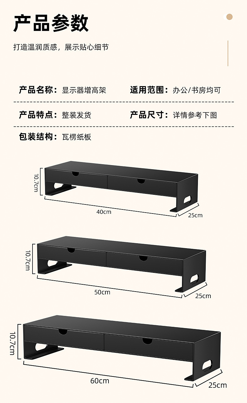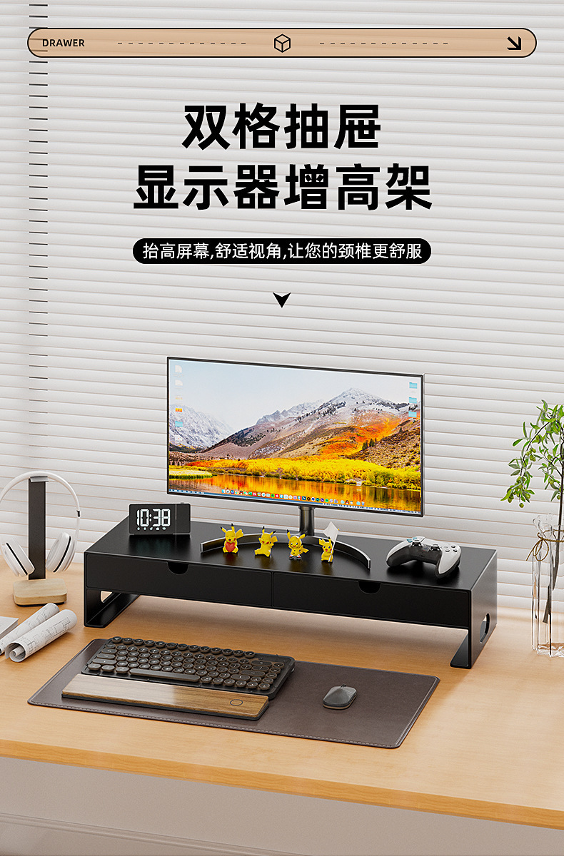 데스크탑 스토리지 랙 컴퓨터 모니터 높은 랙 스크린 지원 랙 오피스 데스크톱 구성 테이블 스토리지 박스스토어 가기