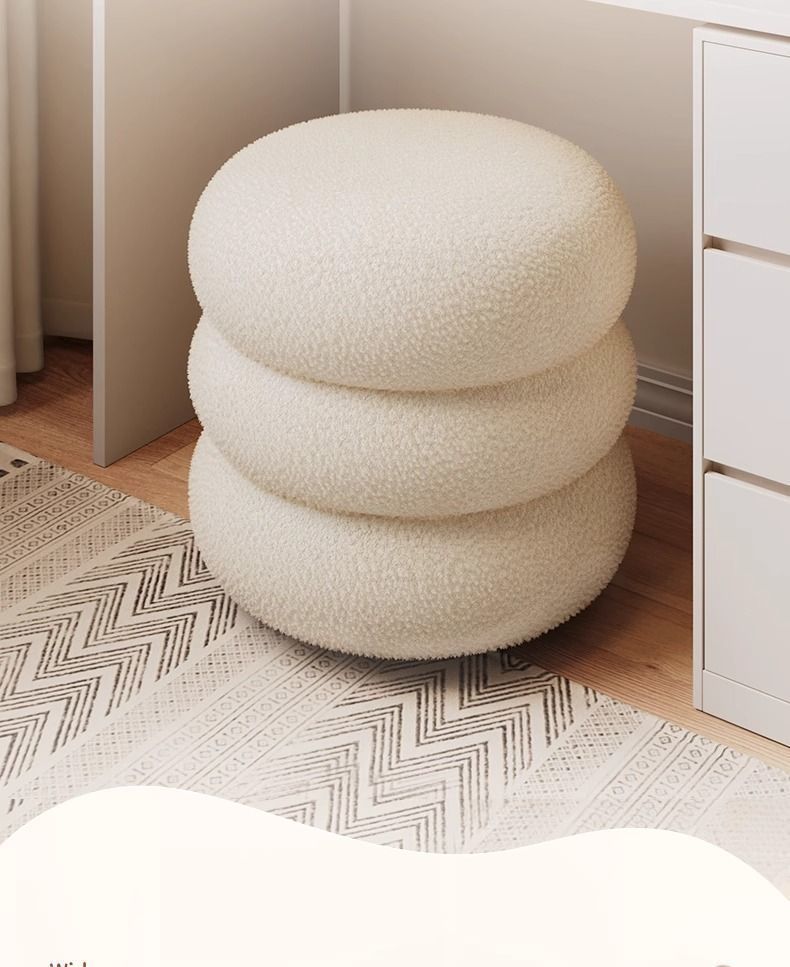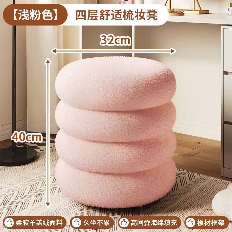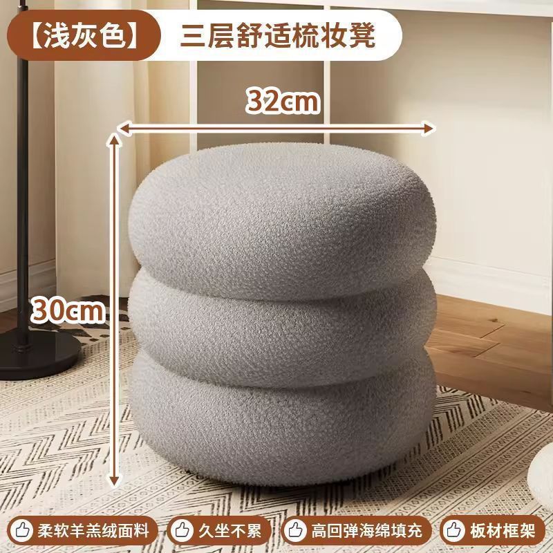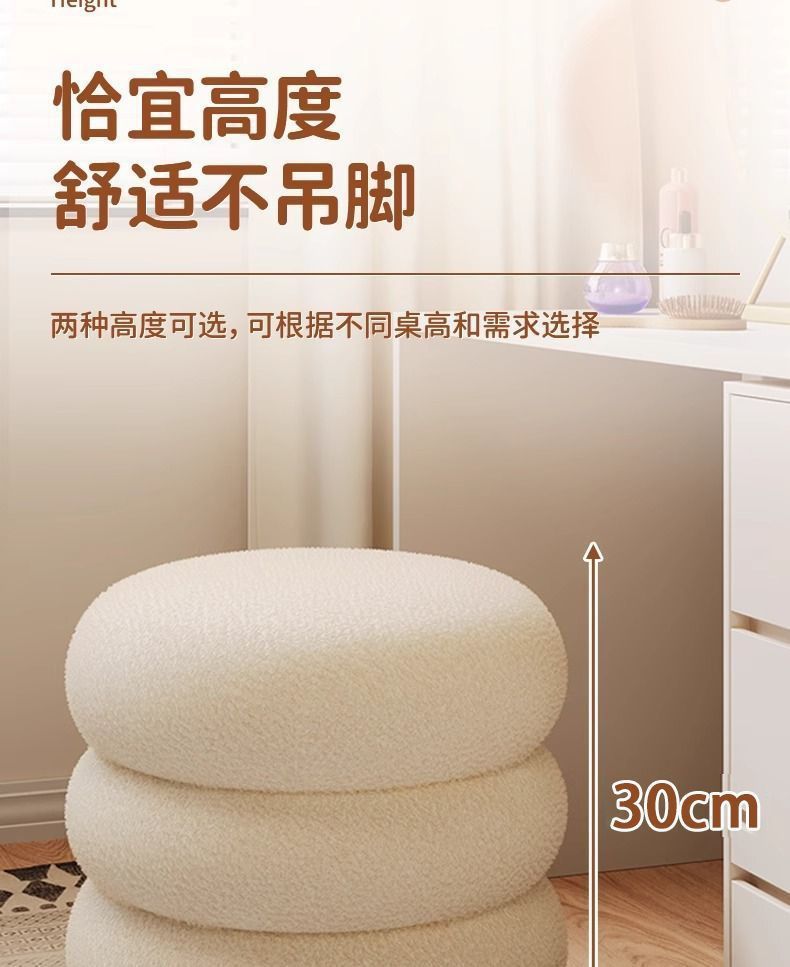 라이트 럭셔리 크림 스타일 드레싱 의자 북유럽 스타일 현대 간단한 작은 아파트 라운드 의자 양고기 벨벳 메이크업 의자스토어 가기