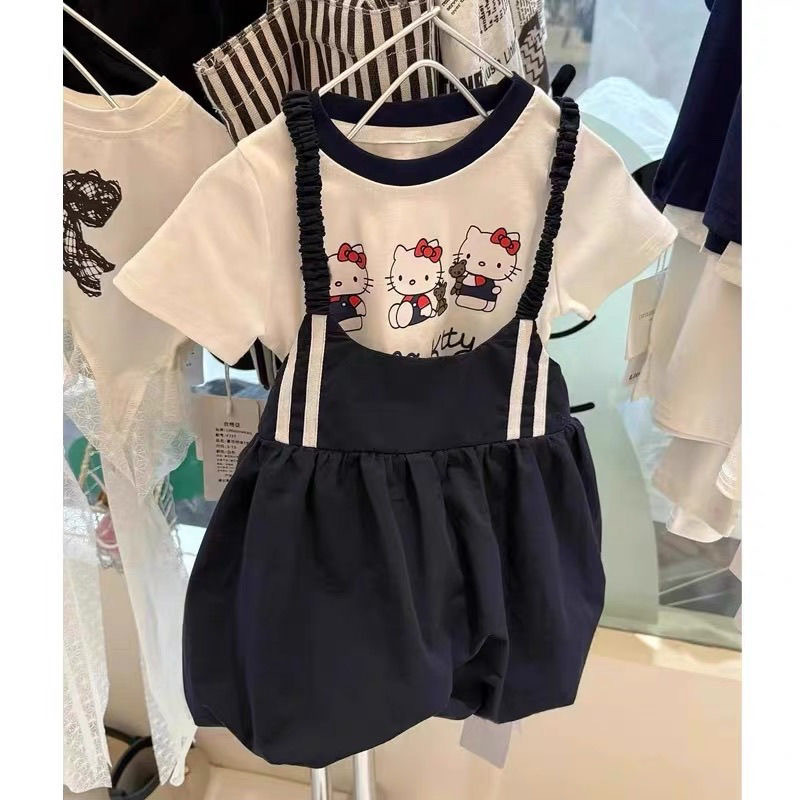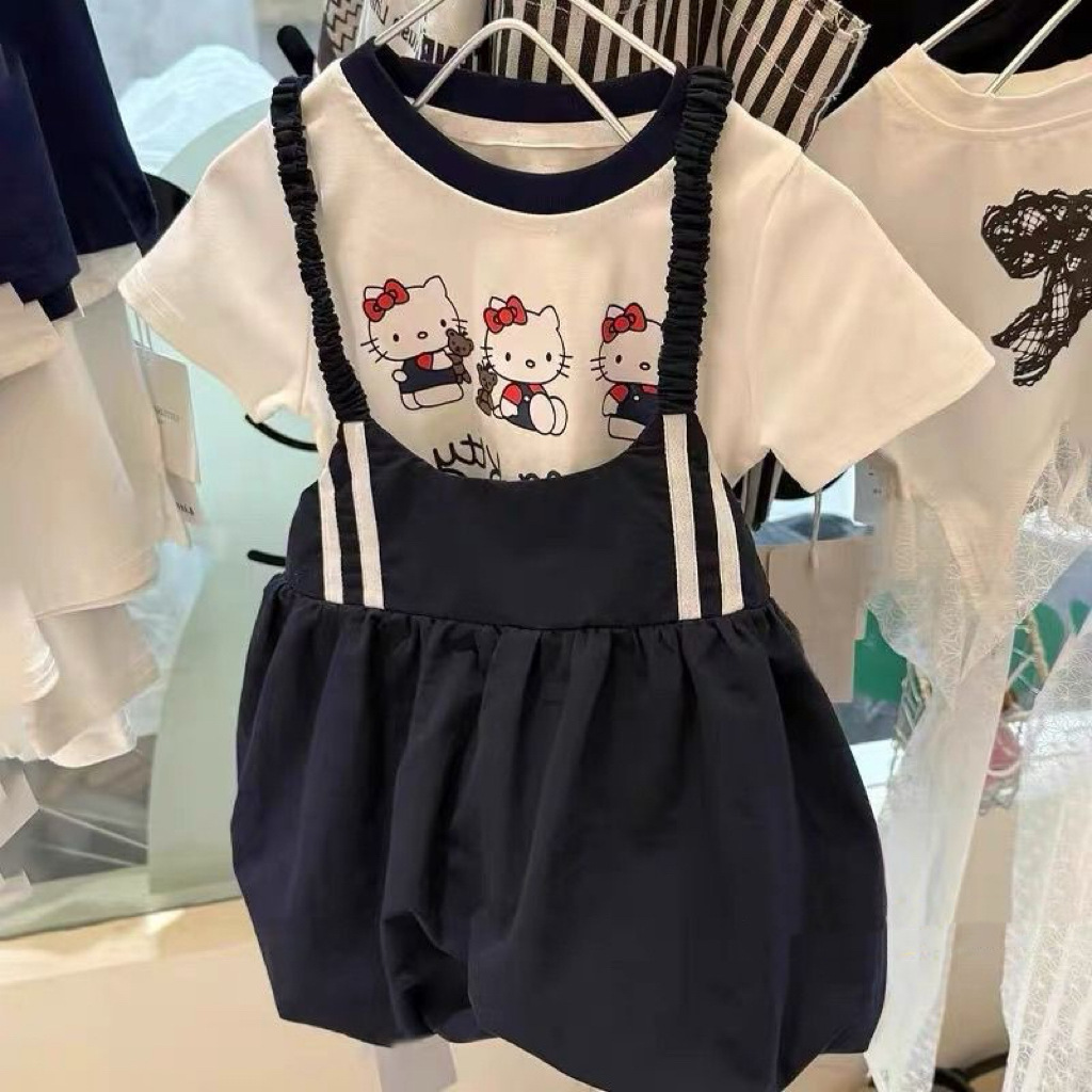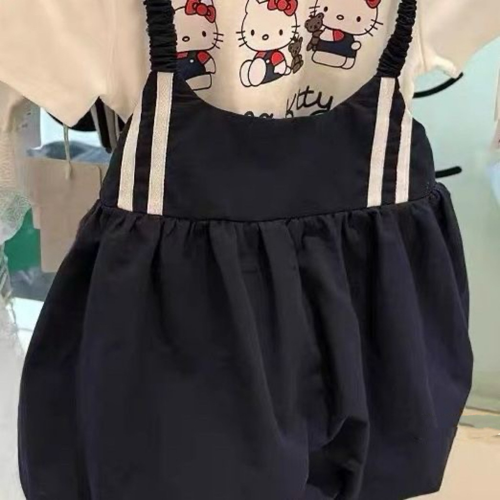 소녀 여름 새로운 도착 세트 2025 캐주얼 인쇄 반팔 어린이 서양식 아기의 스트랩 반바지 두 조각스토어 가기