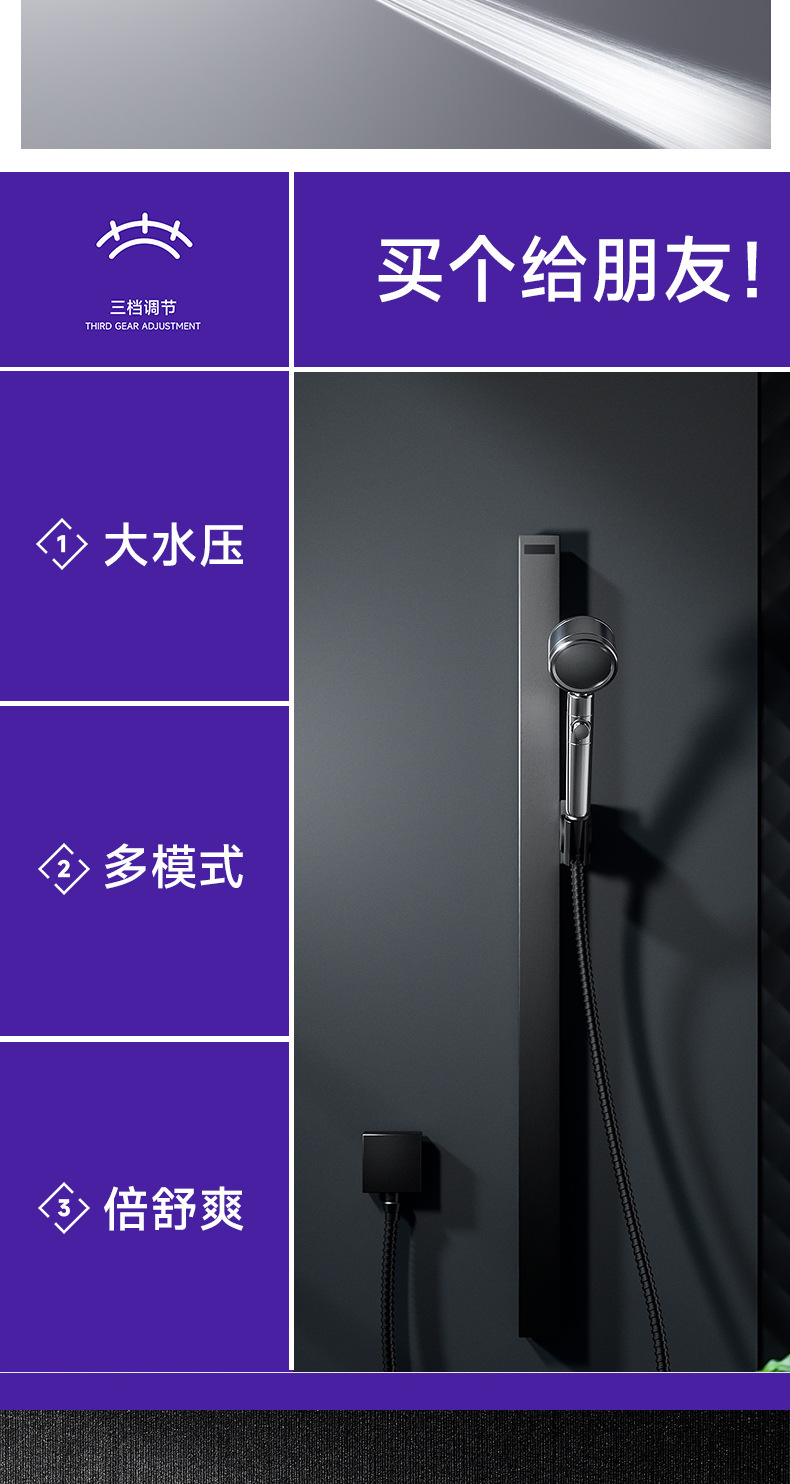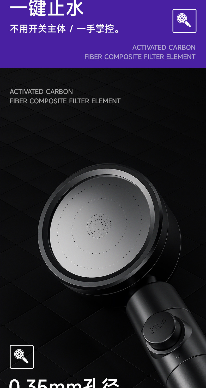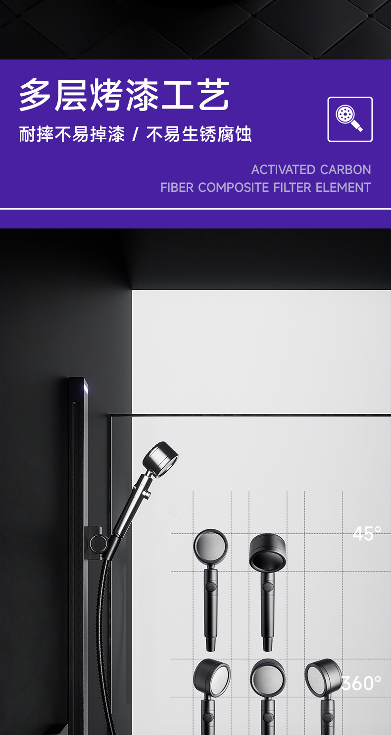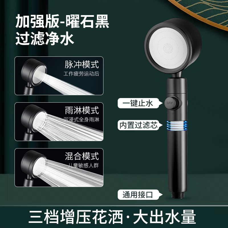 • [블랙] 라이스프레이 3단 슈퍼차저 필터 샤워헤드
